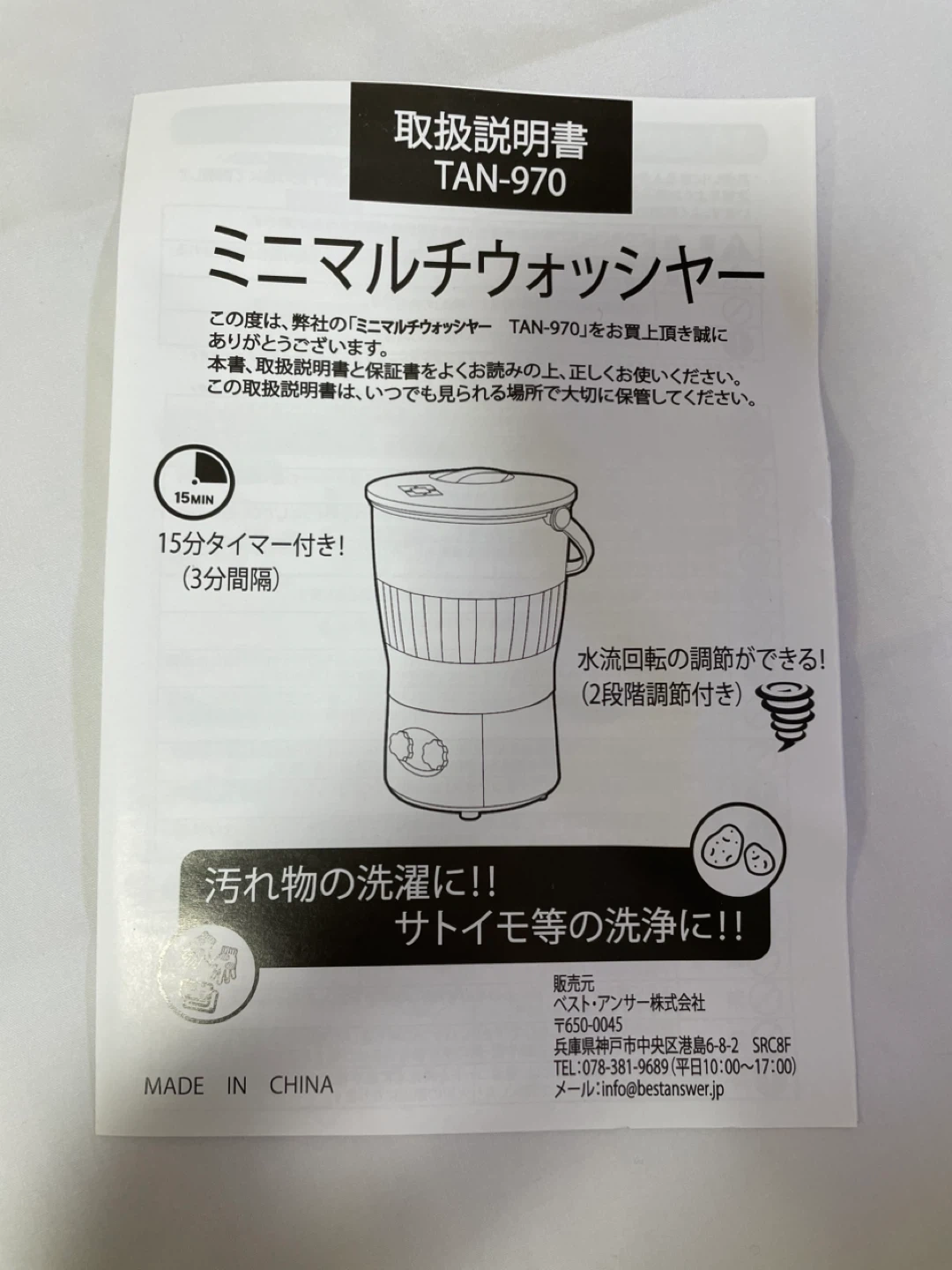 ミニマルチウォッシャー 小型洗濯機 TAN-970