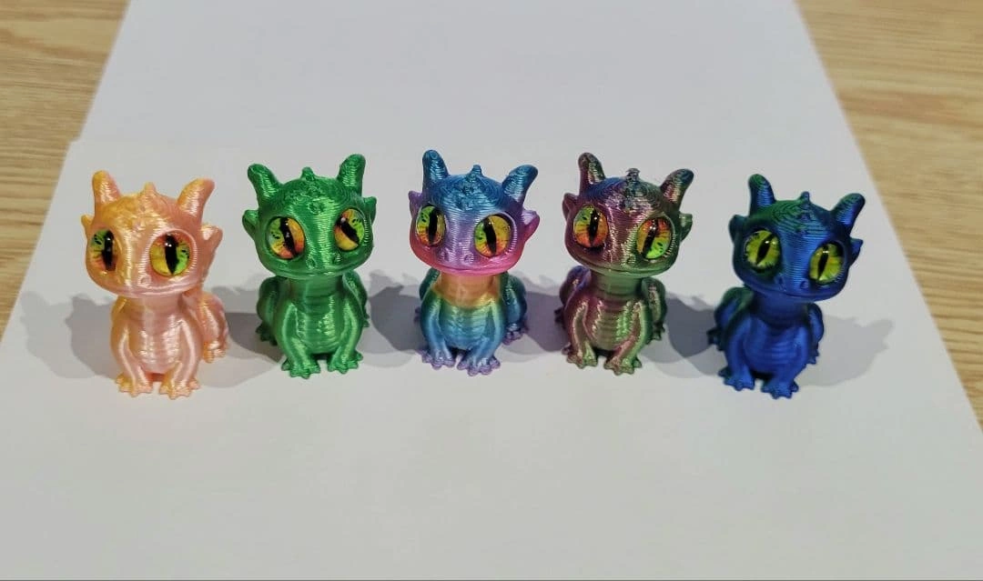 3Dプリンターで制作されたカラフルなミニドラゴンフィギュア、5色セットです‪(*´﹀`*)‬ ちょこんと座った姿と大きな瞳が愛らしく、インテリアやコレクションにおすすめです。 デスクや棚に飾れば、ちょっとした癒しアイテムになります。 【サイズ】 高さ:約3.2cm 横幅:約2.1cm 【ご注意】 海外製品のため、細かなスレ・色ムラ・塗装の個体差がある場合がございます。 初期傷等にご理解いただける方のみご購入をお願いいたしますm(_ _)m