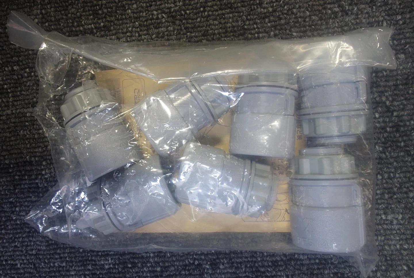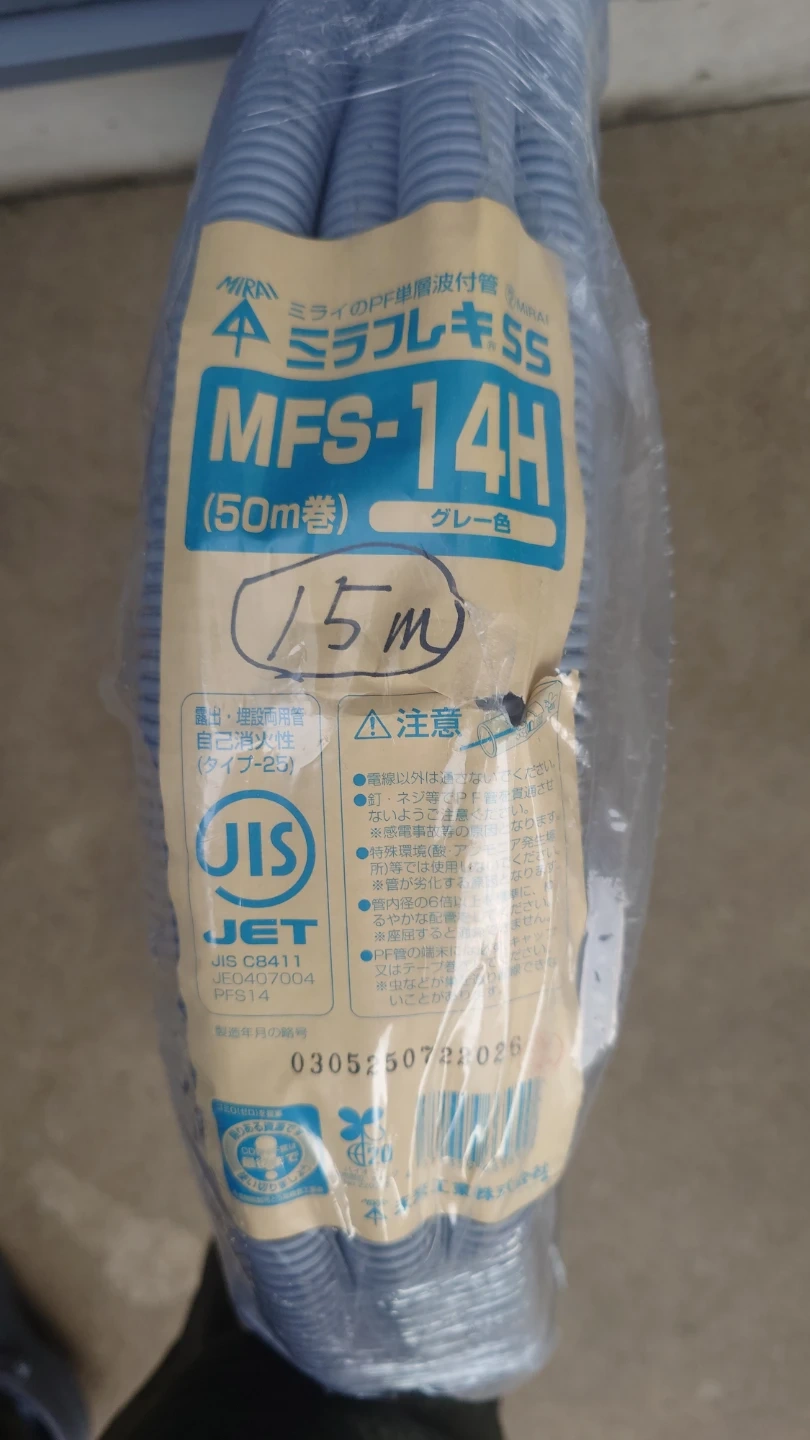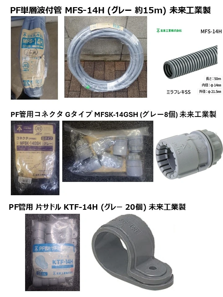 PF単層波付管、コネクタ、サドルの3点セットです。 すべて施工後に余った新品未使用品となります。 ・PF単層波付管(MFS-14H):約15m、グレー ・PF管用コネクタ Gタイプ(MFSK-14GSH):8個、グレー ・PF管用 片サドル(KTF-14H):20個、グレー ■注意事項■ 本体キズ・汚れなど、細かい部分でのご指摘はご了承願います。 完全美品を御希望の方と状態に神経質な方の質問・入札ご遠慮下さい。 写真でのご判断をお願いします