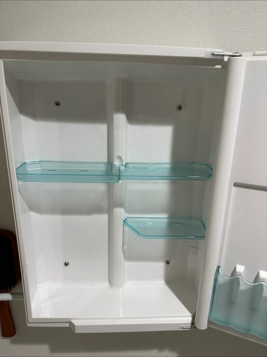 LIXILのミラーキャビネットです。 型番:INAX【TSF-126】 寸法:320×105×458 ( 鏡304×3×406) 材質:〈本体・扉〉HIPS樹脂 定価:¥6.313 3年ほど使用しました。 写真のように線のような汚れ、使用感があります。 中古品にご理解いただける方のみご検討をお願い致します。 右側にフック(100均の粘着性のもの)をつけています。 外して送ることも可能ですが、ベタつく可能性があるので、こちらで外すか否か、コメントをお願い致します。 ご希望の方はお気軽にご連絡ください。