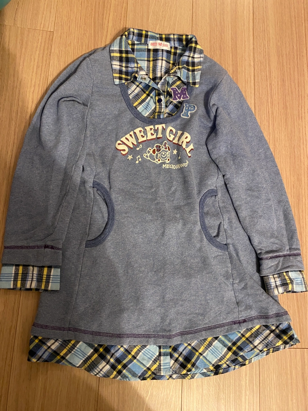 petit main 長袖 ワンピース リボン ハート ドッキング リブニット