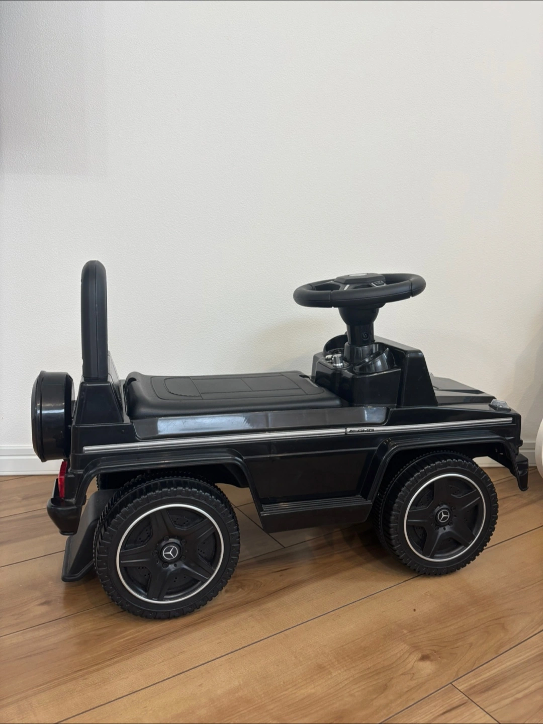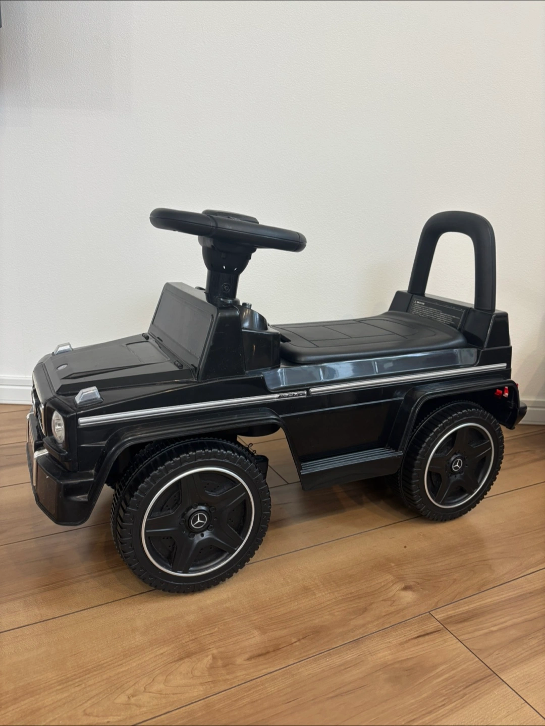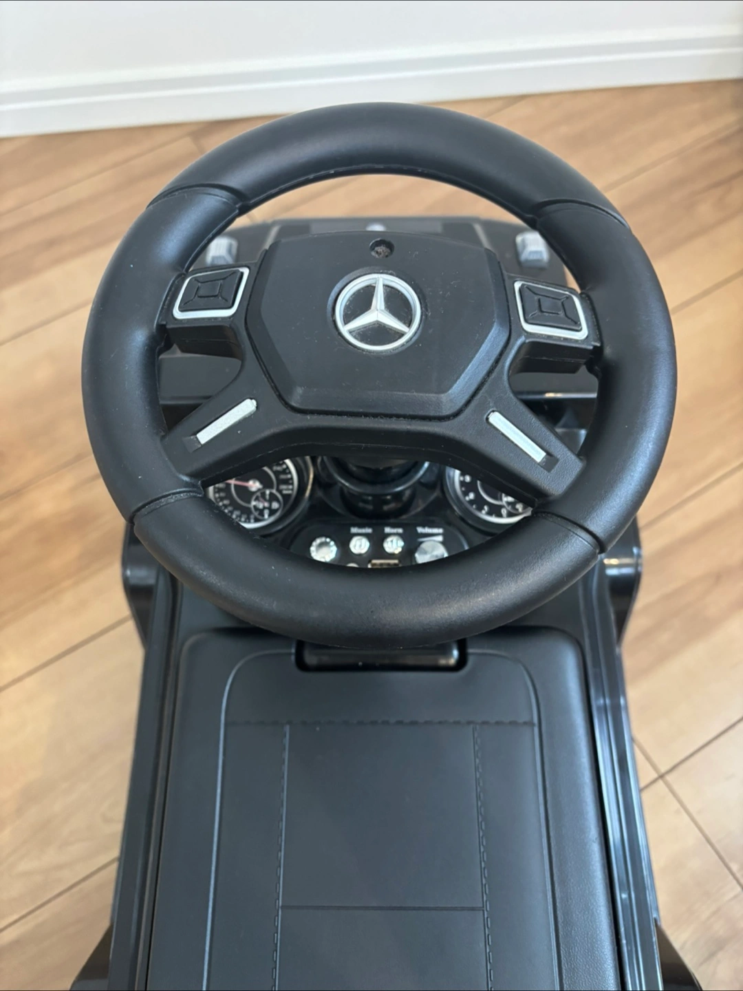 ベンツの乗り物です。 室内で使用していた中古品です。 ハンドルのクラクションは動作確認済み。 音楽は電池残量が少ないと作動しないので、確認していません。 USBが挿せるようになっていますが、使ったことないのでわかりません。 繋ぐと音楽を鳴らしながら走れます。 割れはありませんが、小傷多数あります。 黒なので埃も目立ちやすいです。 シール剥げあり。 お手続きしてくださった時点で、 上記ご了承いただけたものとします。 お取引は三軒茶屋周辺まで来てくれる方。 早い者勝ちでお願いします。