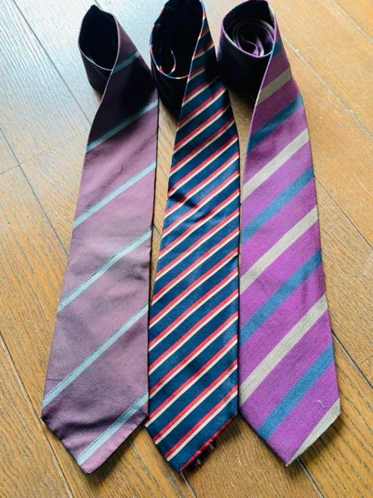 メンズネクタイ、3本セット、グリーン、ブルー系