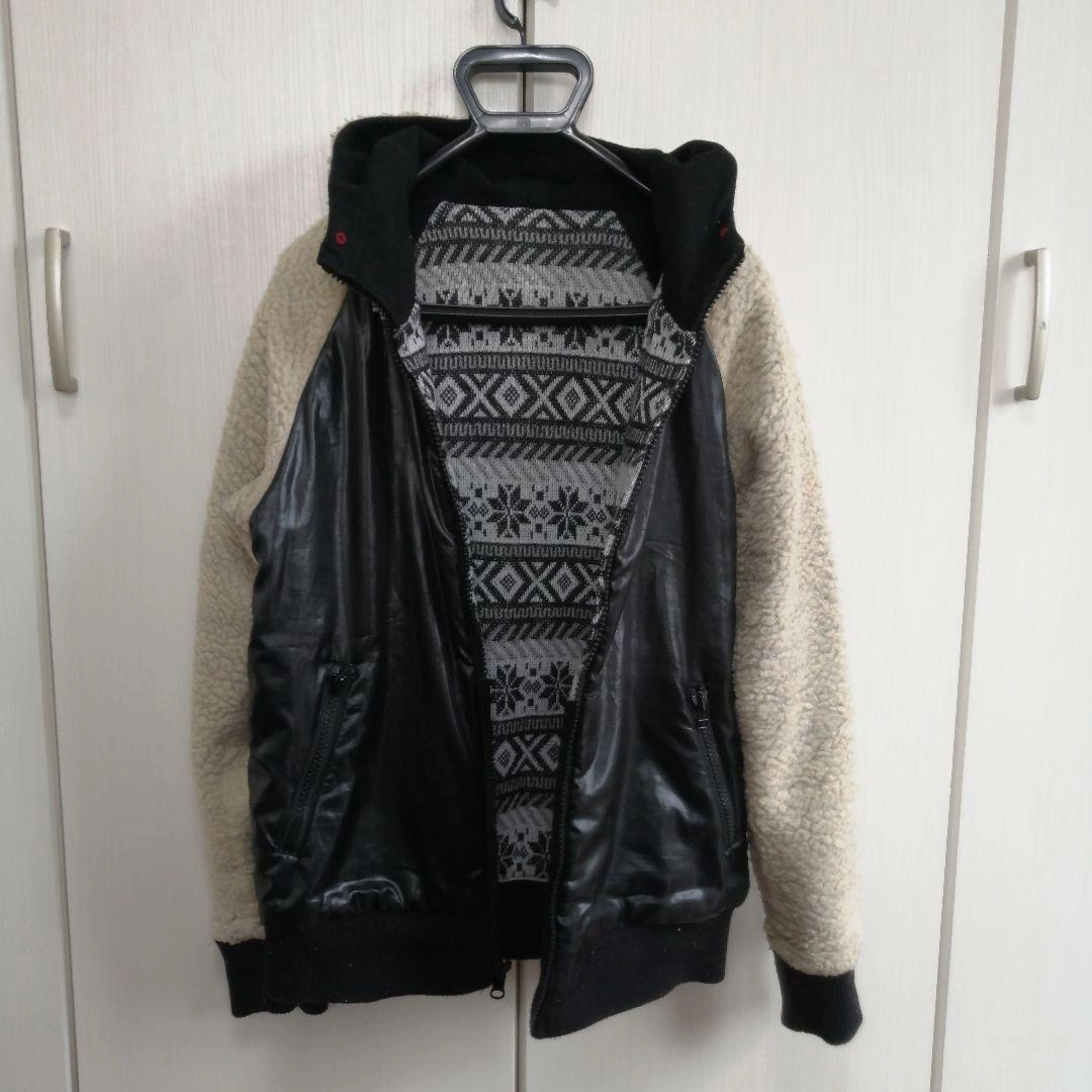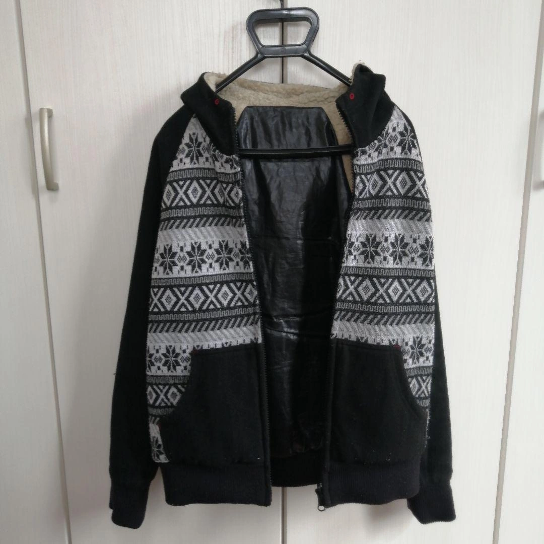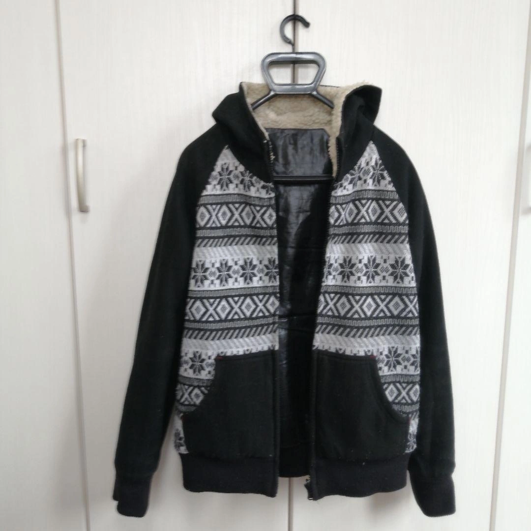 個人の店舗で購入しました。 165cmで着用、サイズはちょうどよかったです。リバーシブルで、表はウール、裏はナイロンのイメージです。 中古品にご理解いただきご検討お願いします。 ■サイズ 身丈65 身幅49 袖丈50 袖幅20 カラー...ブラック 柄・デザイン...刺繍 素材...ウール ジップ・ボタン...ジップアップ フード...フードあり(取外し不可) 襟...オープンカラー 季節感...秋, 冬 ご希望の方はお気軽にご連絡ください。