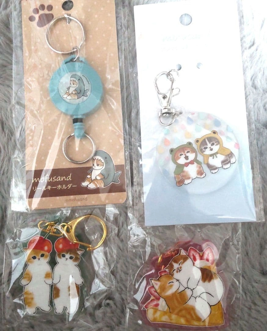 新品未開封モフサンドキーホルダー4個セットです。 リールキーホルダー、アンブレラキーホルダー、アクリルキーホルダーさくらんぼとクレープの4個です。 新品ですが素人保管のため神経質な方はご遠慮ください。 バラ売り、値下げ不可 ご希望の方はお気軽にご連絡ください。