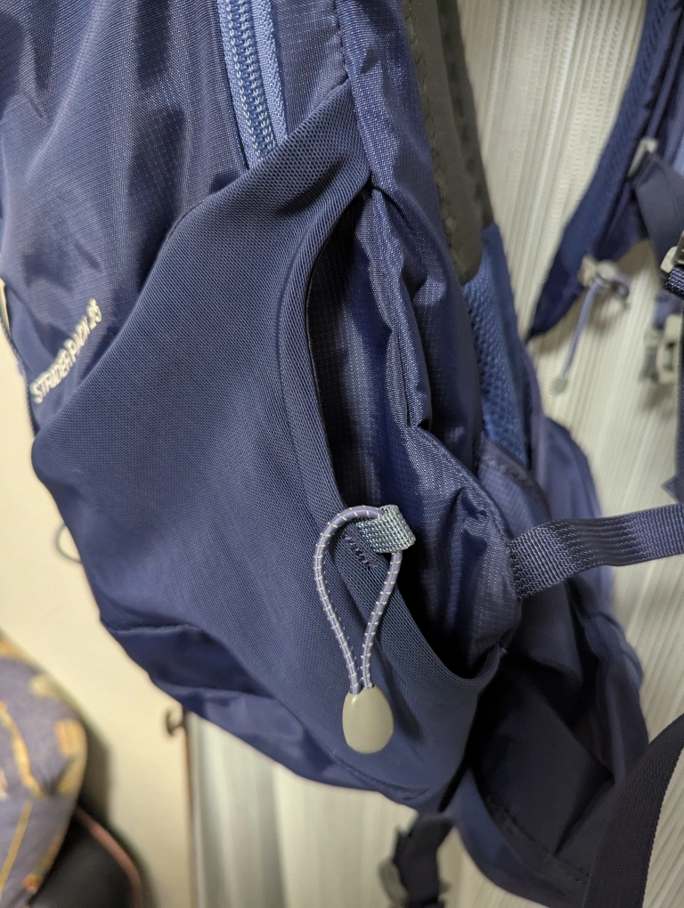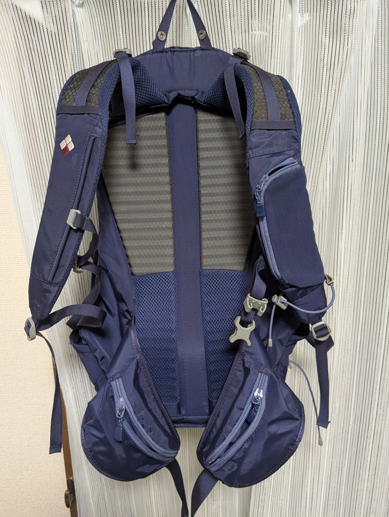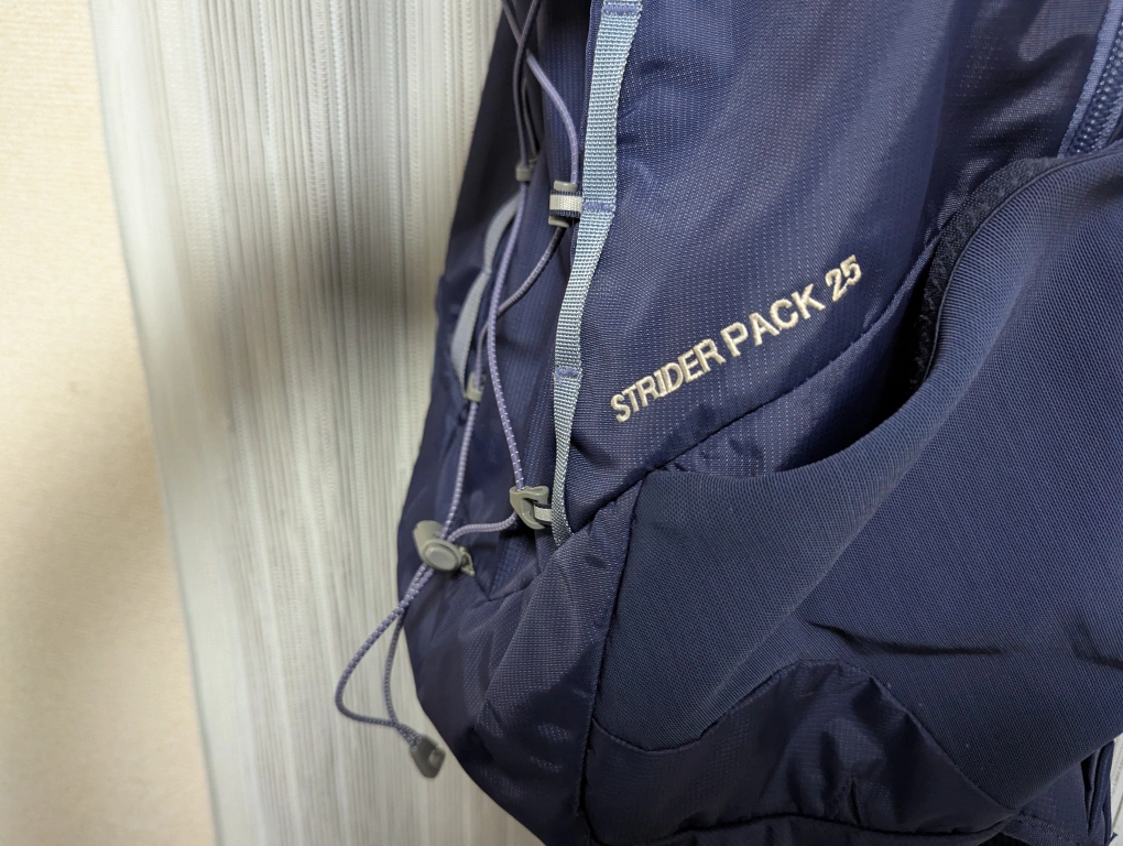 メッシュパッド付きの快適な25Lバックパック。 - ブランド: mont-bell - モデル名: STRIDER PACK 25 - サイズ: 25L - 色: ネイビー - 特徴: メッシュパッド付きバック、サイドポケット ご覧いただきありがとうございます。 おそらく型番は、#1133167 かと思います。 日帰り登山用ザックを探す中で、別のフリマアプリで購入したものです。出品者が男性でしたので、男性用と思って購入しましたが、届いたものを背負って見たところ、ヒップベルトの位置はが少し高く、またベルトの長さも若干短めで、背面長を測って見たところ、女性用と見られることが分かりました。 ザック自体の容量は、日帰り登山にうってつけで、両サイドのホルダーも二方向(上と横)からボトルを挿すことが出来るなど、本当に良い作りです。それから、右側のショルダーベルトに、トレッキングポールを挟むゴムがありました。歩いたまま脇差でポールを固定出来るようです。 使用感もあまり見受けられませんので、ぜひ山行に用いて頂ければと思います。 尚、美品の部類に入ると思われますが、あくまでも中古品ですので、ご理解頂ける方のご購入をお願い致します。 参考 https://webshop.montbell.jp/sp/goods/disp_fo.php?product_id=1133167