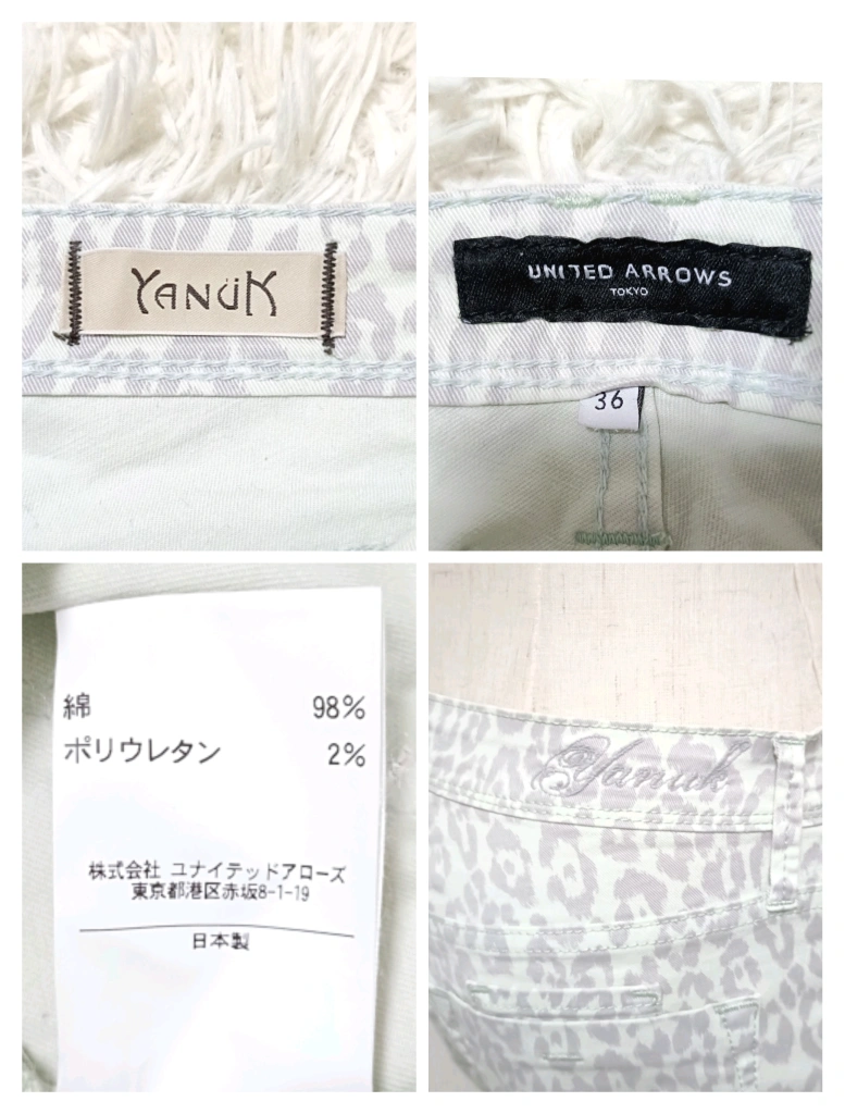 □商品名□ 美品 パトリシア デニムパンツ ジーンズ ジーパン ボトムス レオパード柄 ひょう柄 ストレート ストレッチ生地 36 レディース □ブランド□ YANUK ヤヌーク ユナイテッドアローズ □表記サイズ□ 36 Sサイズ相当です □実寸サイズ(cm) □ 【平置きサイズ】 ウエスト︰37 着丈︰82 股上:18 股下︰64 裾幅︰14 ※実寸につきまして多少の誤差はご了承ください。 ※表記サイズだけではなく実寸のサイズをご確認ください。 □カラー□ グレー×薄緑色 □コンディション□ 目立った汚れやダメージなど特にございません。 ※汚れはできる限り写真にて掲載しております。まずは画像をご確認ください。 どうぞよろしくお願い致します。 □商品管理番号□ L-3830