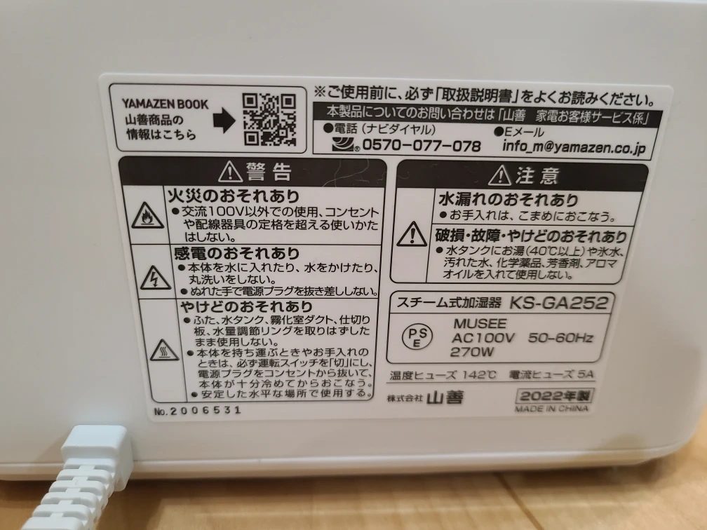 あたたかさヤマゼンのスチーム加湿器です。 【情報】 ブランド:ヤマゼン 型番:KS-GA252 年式:2022年製 【状態】 使用感はありますが、比較的きれいな状態です。 中古品であることご了承ください。