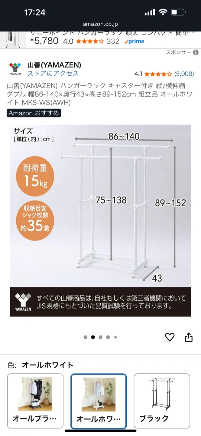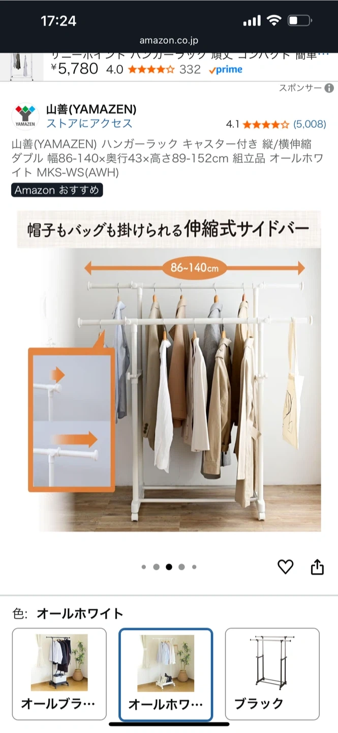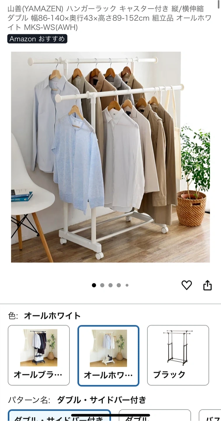 オールホワイトのダブルハンガーラック、サイドバー付きで収納力抜群。 - 色: オールホワイト - パターン: ダブル - サイズ: サイドバー付き 直接取り引き限定 1年前4300円で購入したが引越しのため出品させていただきます。 場所は板橋駅から歩いて7分離れるところです。 購入する前にコンメントお願い致します。 ご覧いただきありがとうございます。
