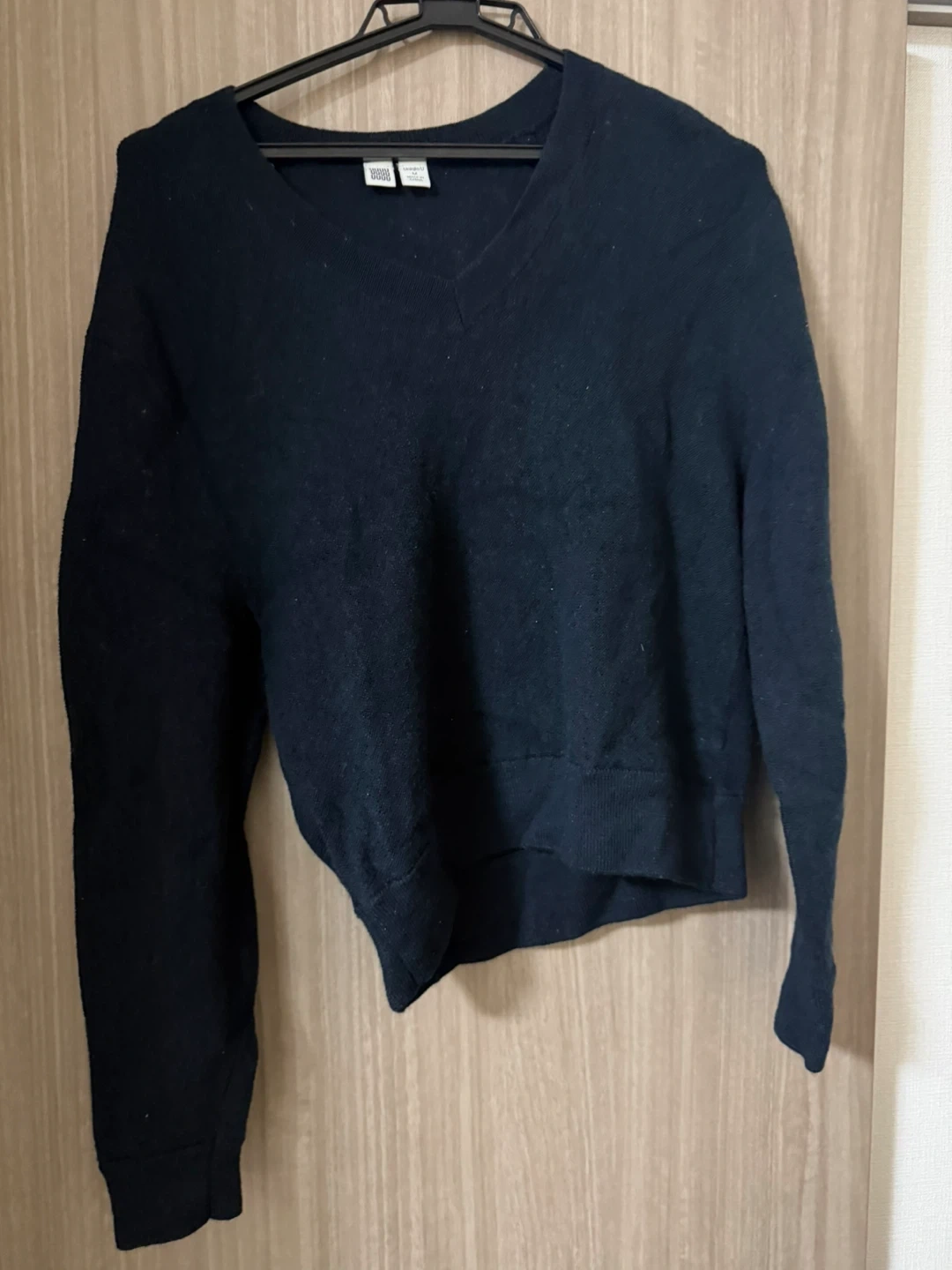 あたたかさユニクロUのVネックセーターです。 【情報】 ブランド:ユニクロU サイズ:M 素材:100% 毛 製造国:中国 【状態】 使用感あり 中古品であることをご了承ください。