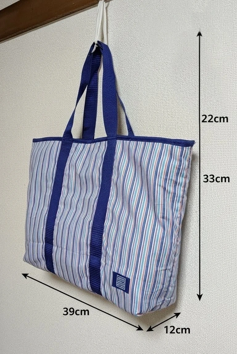 ユニフォームサーカスビームスのストライプ柄トートバッグです。 ・ストライプ柄 ・持ち手と縁は濃い青色 ・内側にブランドタグあり ・サイズはおおよそ縦33cm、横39cm、マチ12cm、持ち手22cm 中古品であることをご了承ください。 または以下の駅まで持っていくことも可能。 東伏見駅 保谷駅 田無駅 西武柳沢駅 武蔵関駅 三鷹駅 武蔵境駅