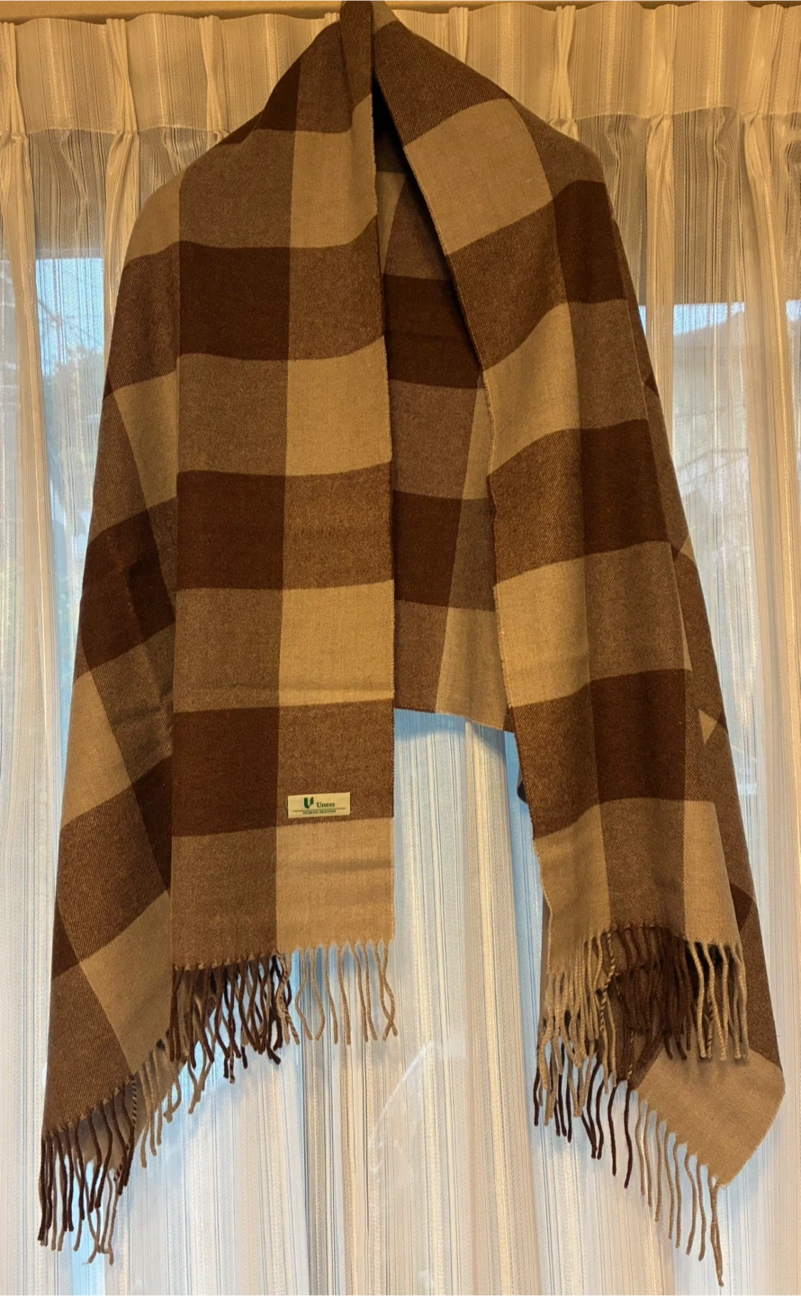 ユーネスのチェック柄ストール 両肩からかけて膝あたりまでのストールで す! ・ブランド:ユーネス ・色:ブラウン、ベージュのチェック柄 ・素材:毛100%(カシミヤ入) ・状態:未使用品 カシミヤ入りですので、手触りがとても良く、ふんわりと優しく包み込まれる感じです❣️ カシミヤ入りでの価格となりますが、価格交渉および受渡し場所等、お気軽にご相談ください♪ どうぞ宜しくお願いいたします。