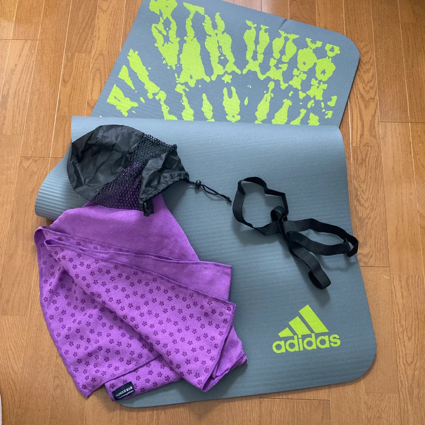 ご覧いただきありがとうございます。 ヨガマットとヨガタオルのセットです。 ・アディダスヨガマット(マットバンド付き) ・滑り止め付きヨガタオル(収納袋付き) 数回使用後、使わなくなってしまったため出品します。 ヨガマットの上にヨガタオルを敷いて利用していました。 保管方法が良くなかったので、ヨガマットの1部(柄の付いている方の短辺側と柄の真ん中付近)に凹みができていますが使用頻度は低かったので、全体のヘタリ感は少ないと思います。 しかし、見落としもあるかもしれませんので、細かいことを気にする方はご遠慮いただけますと幸いです。 お渡しする日時は土日祝のいずれかで、状況に応じてご相談させてください。 (あまり時間を確保できないため、早朝でご相談させていただく場合があります)
