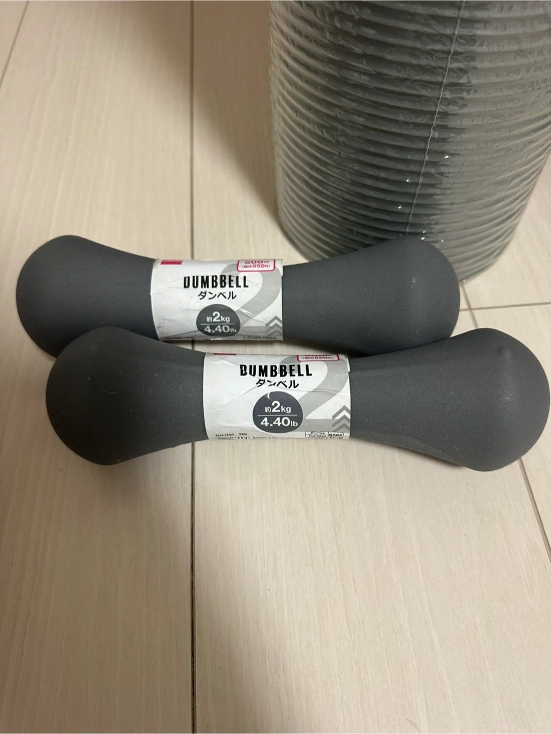 ヨガマット(173cm×61cm×0.7cm)と2kgのダンベル2個のセットです。 どちらも購入後、一度も使用していません。 ヨガマットは770円、ダンベルは1個550円で購入しました。 合計で1,870円ほどでしたが、セットで1,000円でお譲りします。 野方駅周辺での直接受け渡し希望です。 価格交渉はご遠慮ください。 未使用ですが、自宅保管のためご理解いただける方のみお願いします。 受け渡し場所:野方駅のファミリーマート前を予定しています。