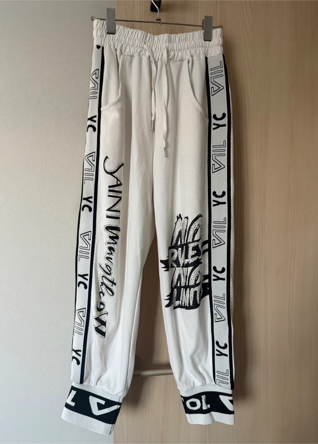 ラインストーンデザイン ホワイトスウェット M 数回履きましたが、状態は良いです。 ☆サイズ (平置き採寸) ⚫︎ウエスト周り 31cm ⚫︎ヒップ周り 64cm ⚫︎股上 35cm ⚫︎股下 61cm ⚫︎太もも周り 33cm ⚫︎ひざ周り 28cm ⚫︎裾幅 13 cm ※注意……購入手続きまでに一度コメント下さい。宜しくお願いします。 ※他の出品物とのまとめ買い大歓迎です♪まとめ買い値引き致します。コメント下さい。 ※お客様の都合による返品は対応出来ませんので、ご了承下さい。素人管理ですので、神経質な方はご遠慮ください。ご理解頂けるかたにお願い致します。 お待ちしてます。 ~RAIN777~