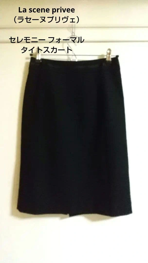ラセーヌプリヴェのスカートです。 シンプルでフォーマルな場、セレモニーやオフィスでも使えますが、サイズ感が似合わなかったため出品します。 中古・自宅保管にご理解の上、よろしくお願いいたします。