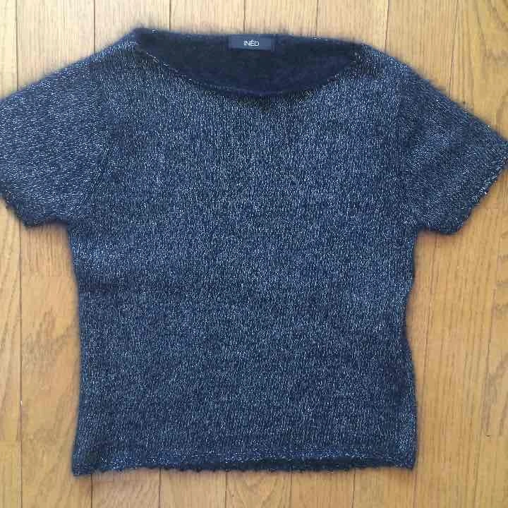 裏がモヘアになっている華やかなセーターです。うまく写真に撮れなかったのですが、黒にシルバーのラメ入り毛糸で、とても柔らかい手触りです。 アンゴラ 61% ナイロン 25% レーヨン 9% ポリエステル 5% 平置きにして胸幅40cm着丈47cm 別サイトにも出品していますので突然削除することがあります。