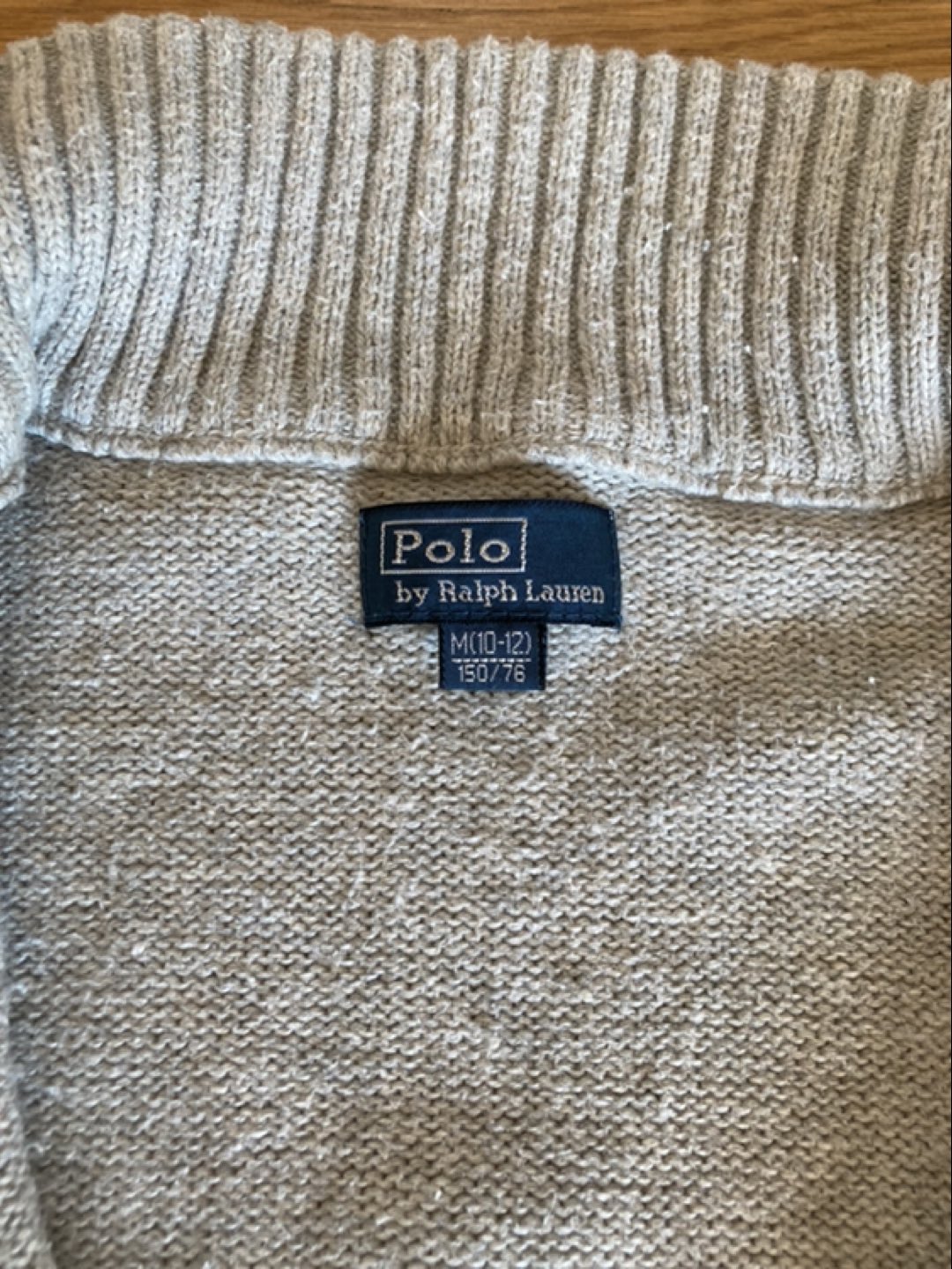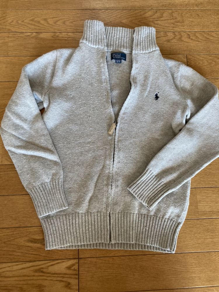 ラルフローレン カーディガン 男児 サイズ150 (洗濯して縮んでいるかもしれません) グレー 綿100% 全体的に毛玉や毛羽立ちがあります サイズ違いの紺色も出品しています