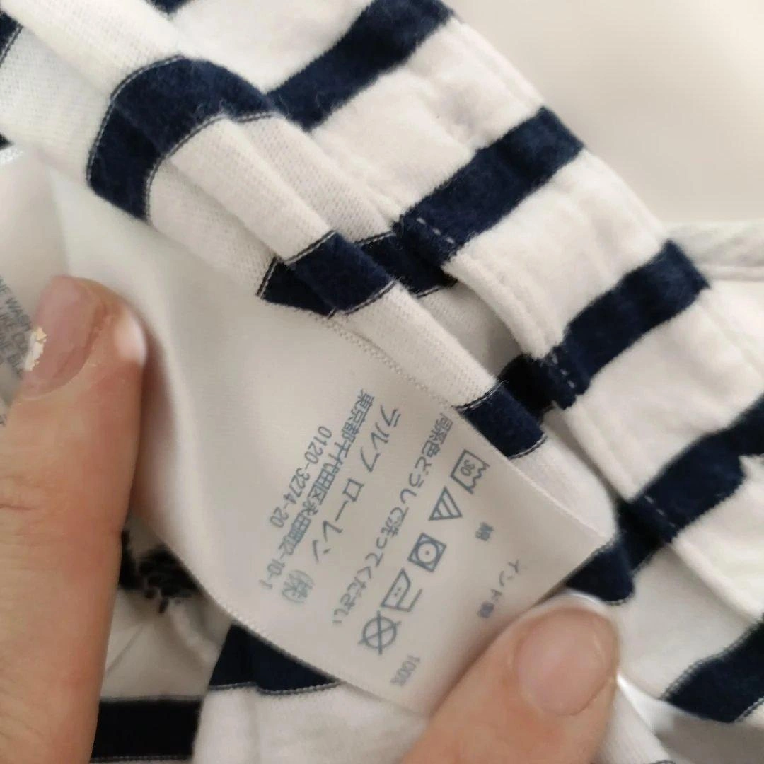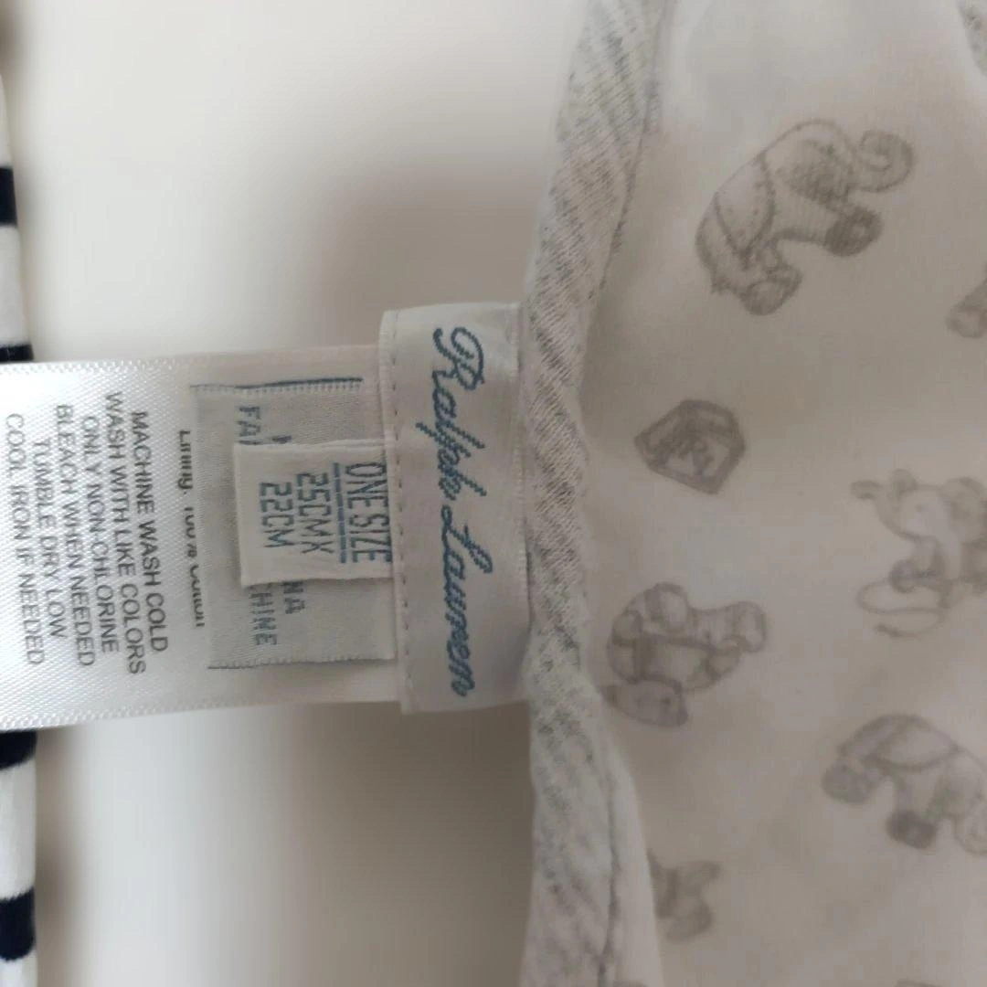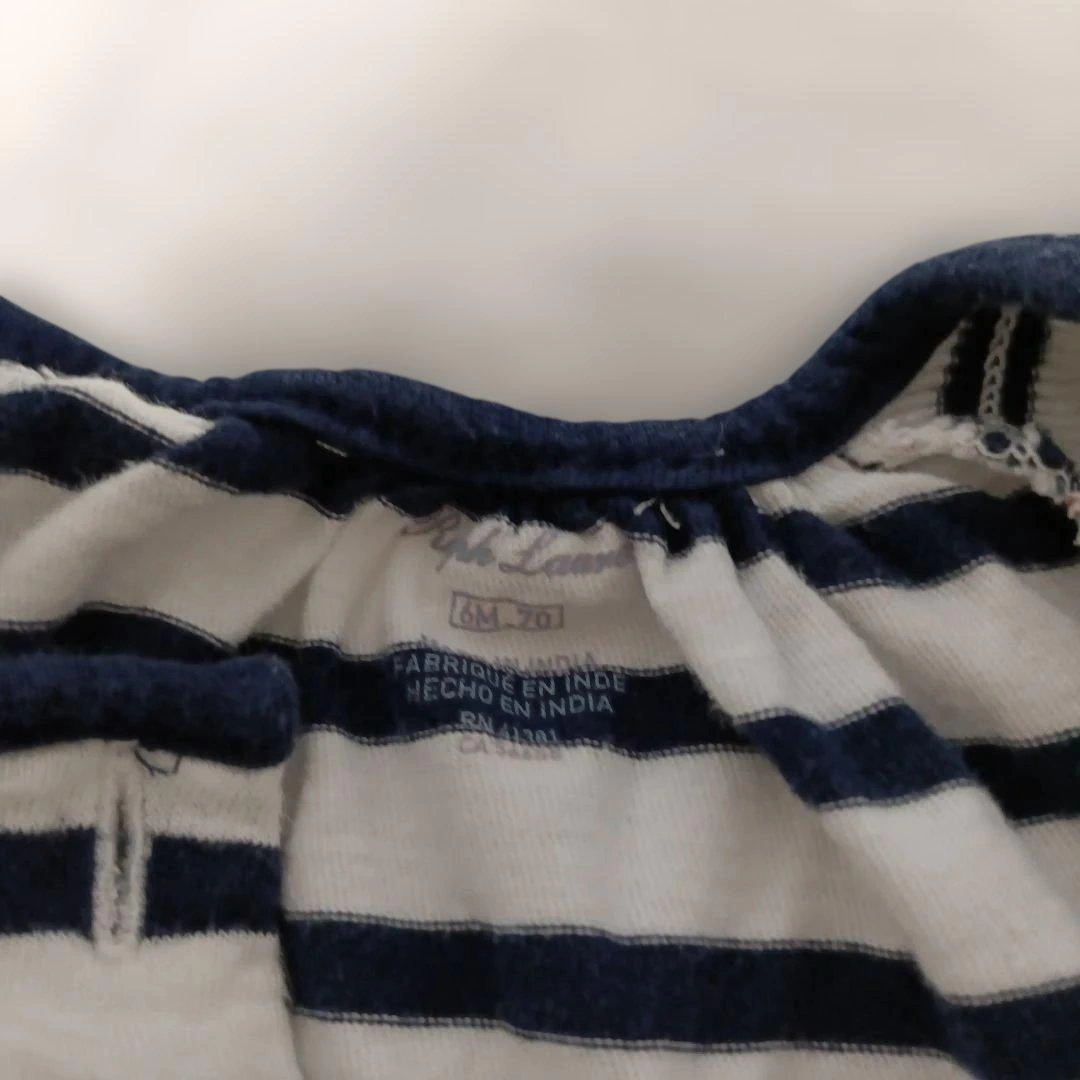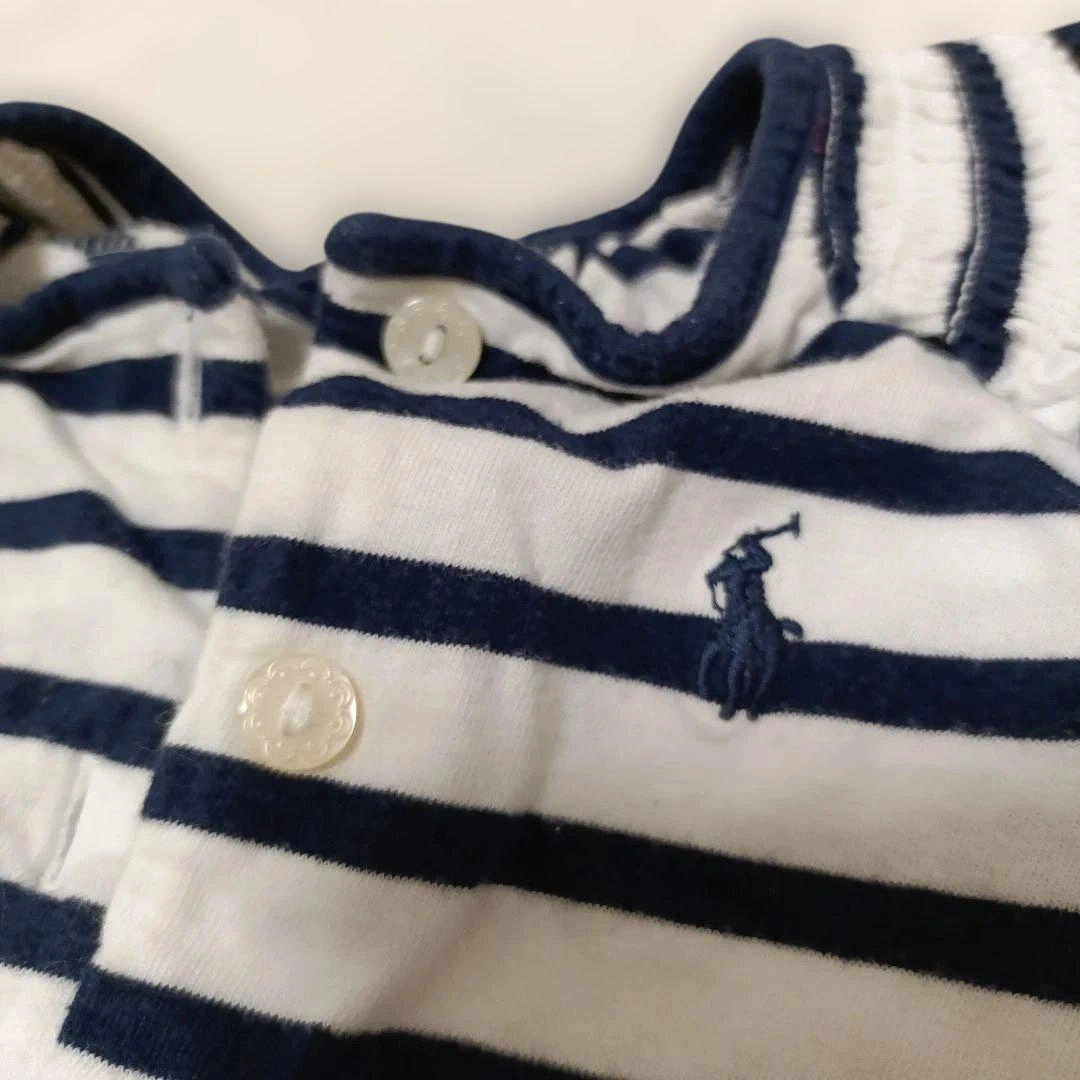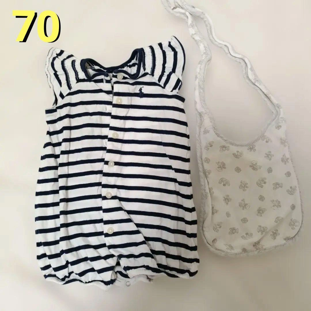 あたたかさ以下2点のセットです。 それぞれ着用回数は5回未満です。 ・白と紺のストライプデザイン、フリル付き半袖ロンパース→美品です ・スタイ→うっすらとシミがみえます。 背中でクロスして留めるタイプで首が苦しくならない仕様です。 ブランド: Ralph Lauren 色: 白/紺のストライプ デザイン: ボタン付き、フリル付き ご覧いただきありがとうございます。