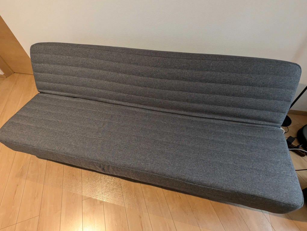 ■ 背景 引越のため手放すことに決めました. このまま廃棄するのではなく, 「私の手を離れた後も誰かの役に立てば良いな」 と思いこの度出品させて頂きました. ■ 本体情報 - 商品名: リクライニングソファベッド - ブランド: 無印良品 - JAN: 4550512047216 - 外寸: 幅98 × 奥行198 × 高さ23 cm - 色: グレー - 重量: 44 kg /* url */ リクライニングソファベッド https://www.muji.com/jp/ja/store/cmdty/detail/4550512047216 木製脚・20cm/ブラウン https://www.muji.com/jp/ja/store/cmdty/detail/4550002529437 ■ 使用状況 入手してから半年程使用しました. 購入して半年程度しか経っていないため, 非常にキレイな状態です. カバーを掛け, 休憩時等にソファとして利用していました. ■ こんな方にピッタリ 次のような用途を考えている方にオススメです. - 新品が欲しいけど, それまでのつなぎとして使いたい方 - 中古でも使えれば問題ない方 - ソファベッドが欲しい方 お渡しの際は簡易清掃をしてお渡し致します. ■ お譲りに関する条件 次の条件を満たす方にお譲りしたいと考えております. - 自宅まで取りに来られる方 - 中古でも構わない方 - 「ノークレーム・ノーリターン」が可能な方 ■ ご連絡・ご相談 ご検討されている方 または ご質問のある方はお気軽にご連絡下さい. 引越期日の関係で早い者勝ちにしようと考えておりますので, 最初にご連絡いただけた方から随時対応させて頂きます. 皆様からのご連絡をお待ちしております.