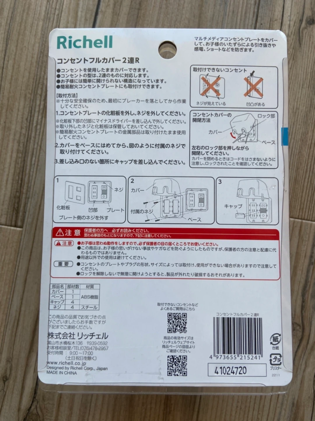 開けたのですが家のが3連だったの気づき使用していません。 リッチェルのコンセントカバーです。 ・ブランド:リッチェル ・商品名:コンセントフルカバー 2連R ・コンセントを使用したままカバーできます ・コンセントの型は、2連のものに対応します