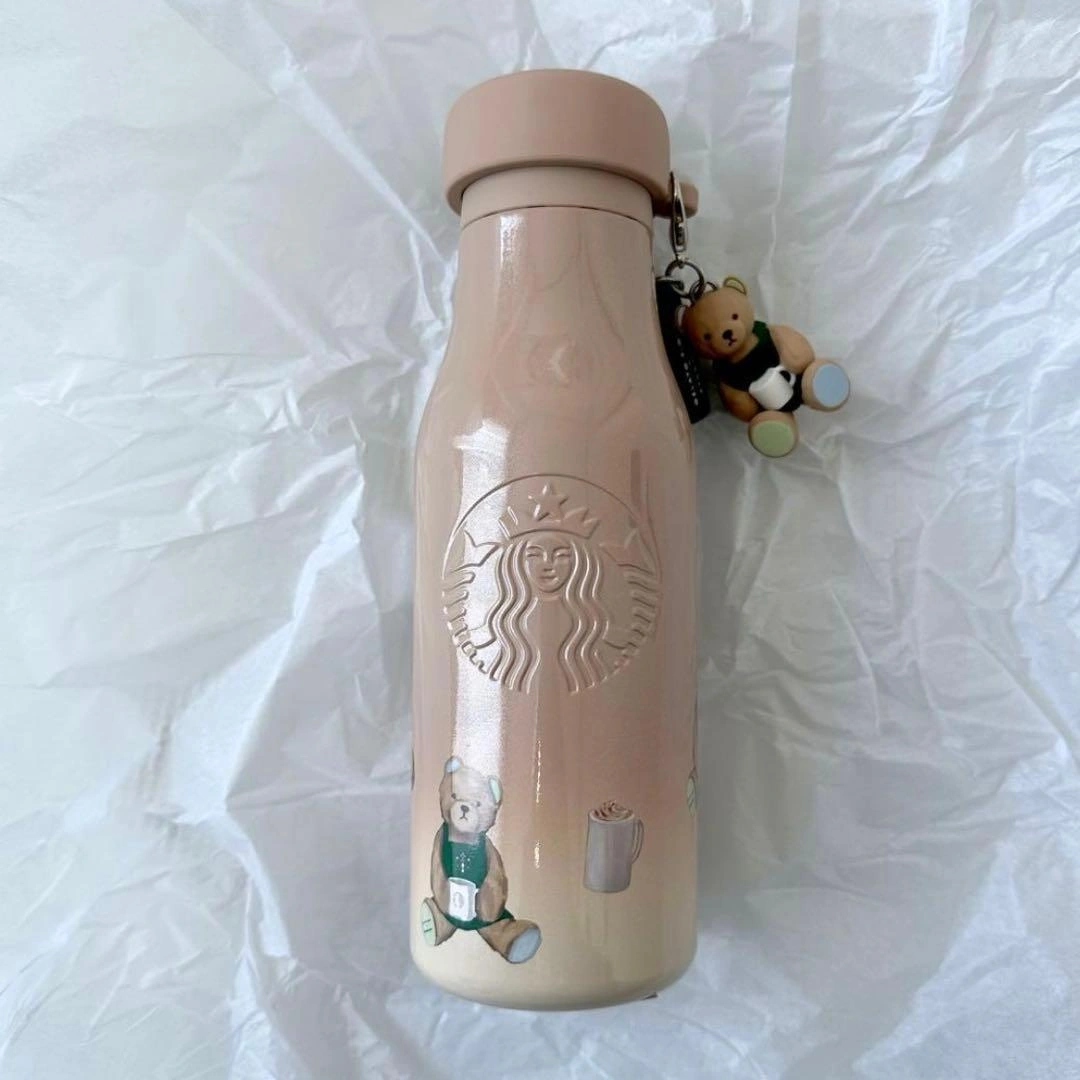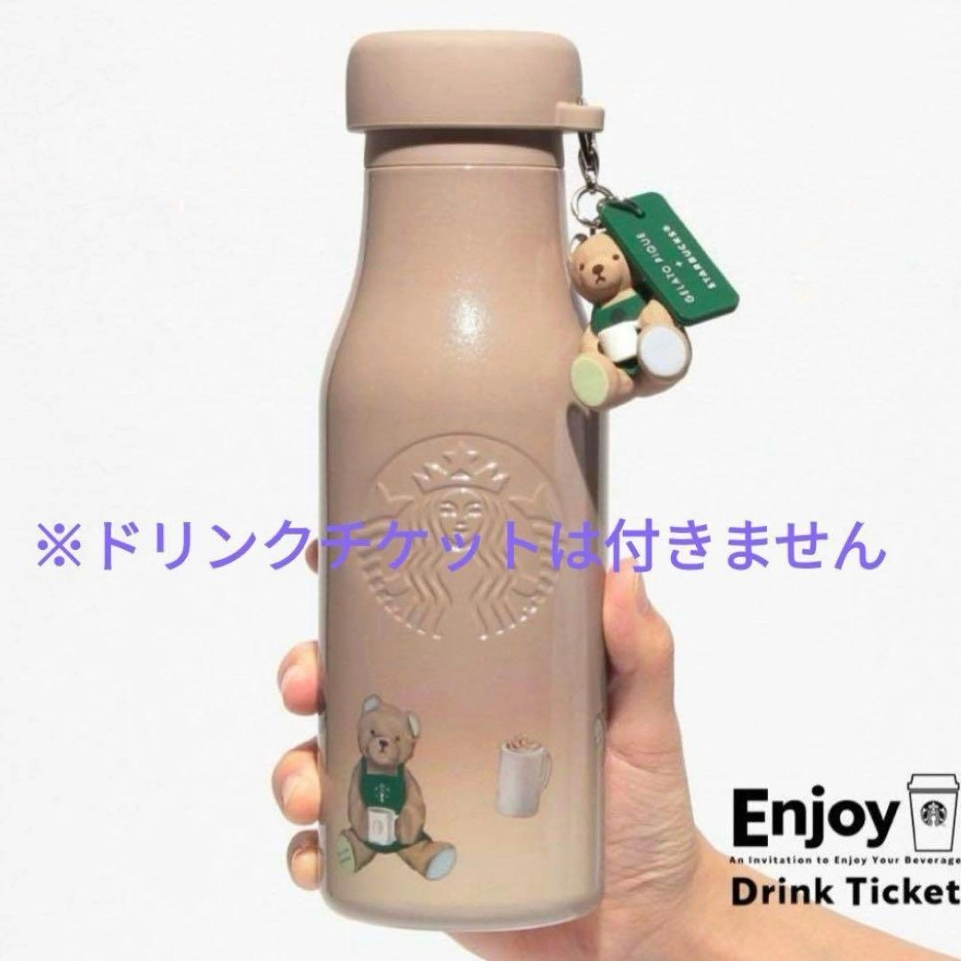 リッドカバーベアチャーム付きステンレスボトル モカベージュ スタバ ジェラピケ