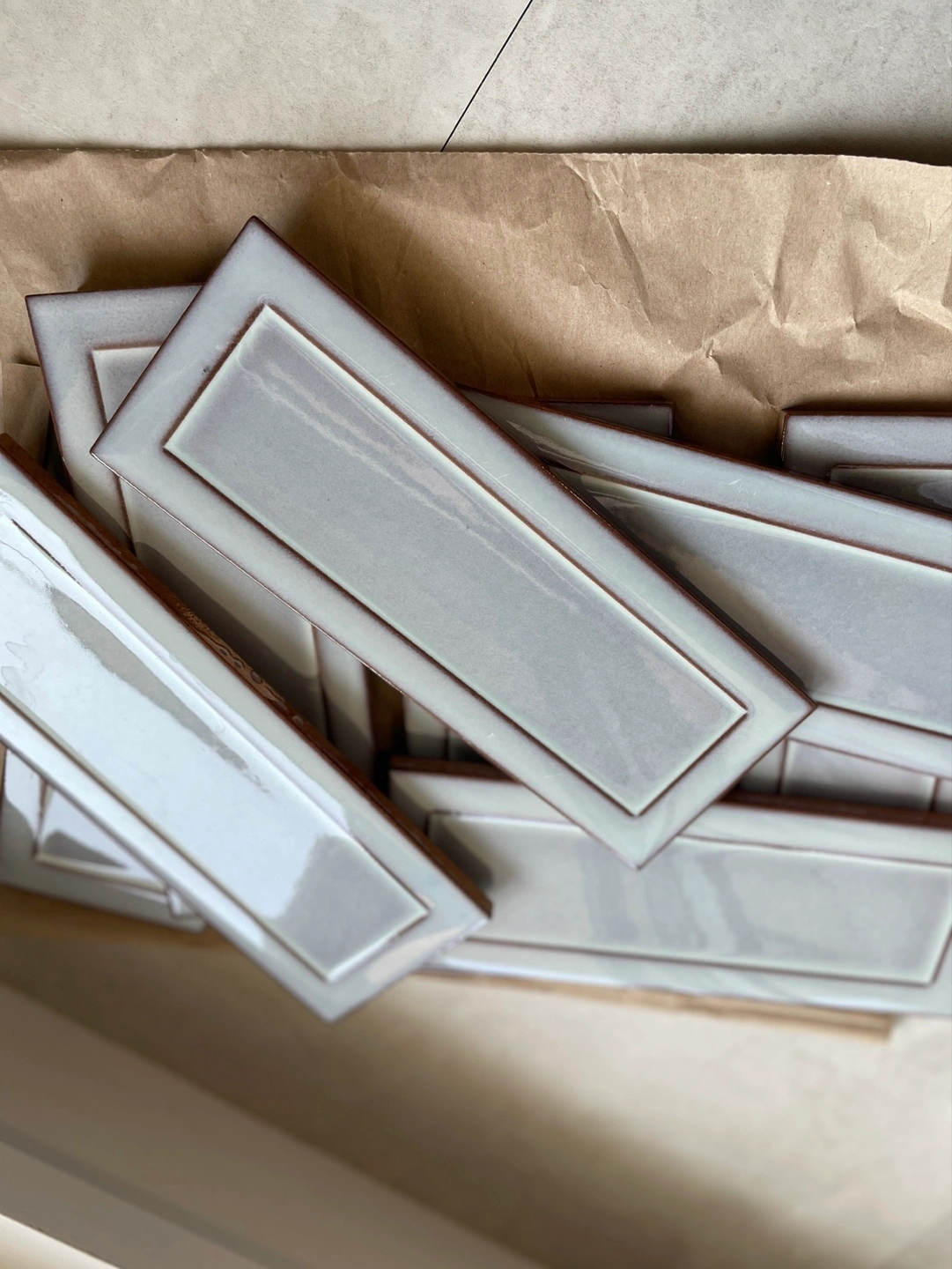 リノベ時にキッチンに使用したタイルの余りです。 29枚あります。 光沢のあるライトグレーのセラミックタイル、 サイズ240x90mm DIY、新築時、リノベーション時にいかがでしょうか? - Color: Light Gray with Glossy Finish - Material: Ceramic - Model: TMG-3 / - Size: 240x90 mm ご覧いただきありがとうございます。