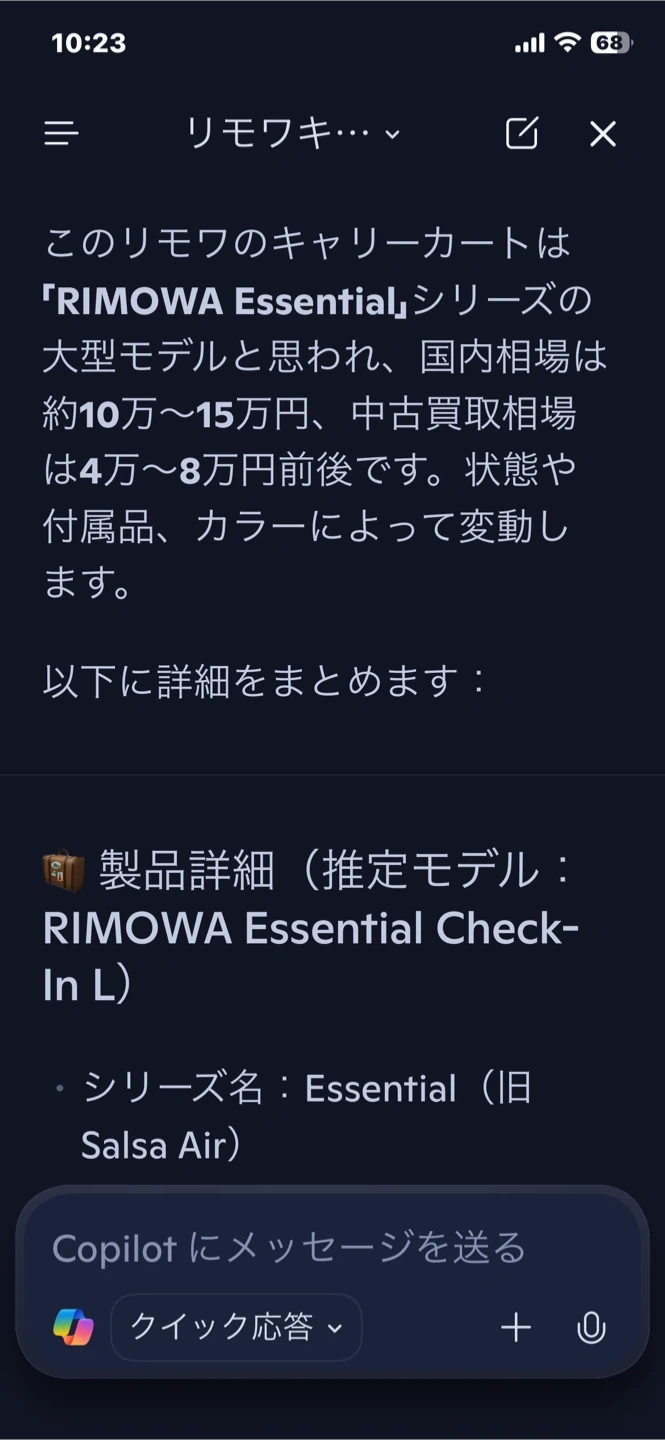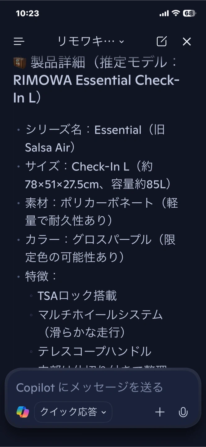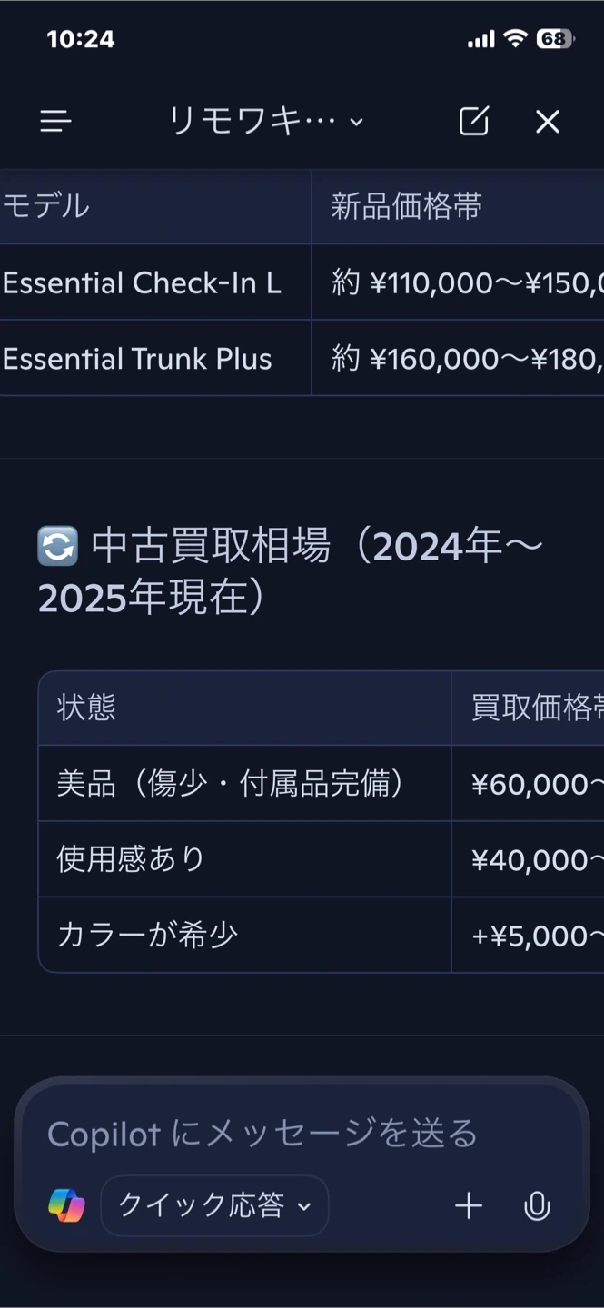 ホーム中央区のフリマ中央区のスポーツ・レジャー京橋のスポーツ・レジャーリモワ スーツケース周防京橋46℃あたたかさ取引完了リモワ スーツケーススポーツ・レジャー · 3,300円リモワのスーツケースです ・カラー:パープル ・全体的にきれい 中古品であることご了承ください 売り切れの際はご容赦下さいませ キャスターが1個取れてます商品の状態やや傷や汚れありチャット9·お気に入り4·閲覧数178アプリで他の商品を探す取引はアプリでのみ可能です。ダウンロードしてご利用ください。周防さんの出品すべて見るジョーダン スウェットパーカー700円北新宿アディダス スニーカー1,300円京橋レア シューズ3,000円京橋ナイキ スニーカー1,100円京橋シューズ1,500円京橋アディダス スニーカー1,100円京橋
