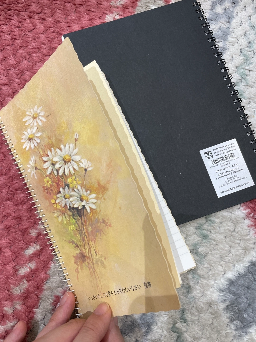 ・7PREMIUM ・リングノート ・A5サイズ(140×210mm) ・罫線6.5mm ・50枚 ・花柄表紙、黒表紙