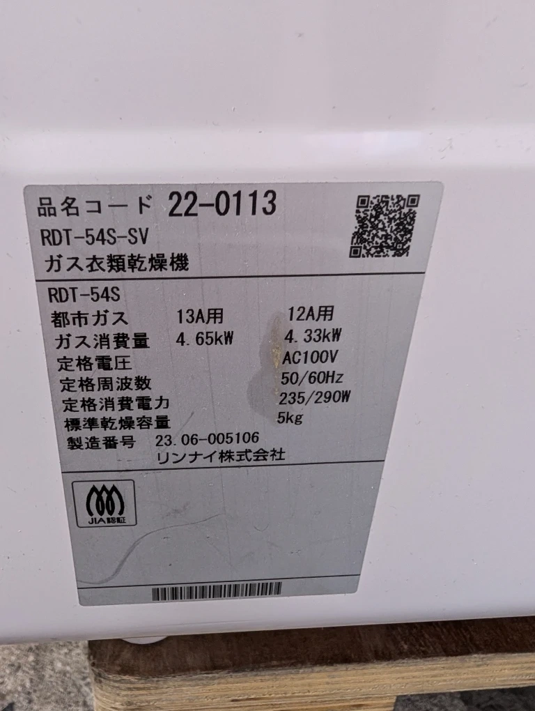 リンナイのガス衣類乾燥機です。 【情報】 ブランド:リンナイ 型番:RDT-54S-SV サイズ・容量:標準乾燥容量 5kg 【状態】 使用感少なめ 中古品であることをご了承ください。