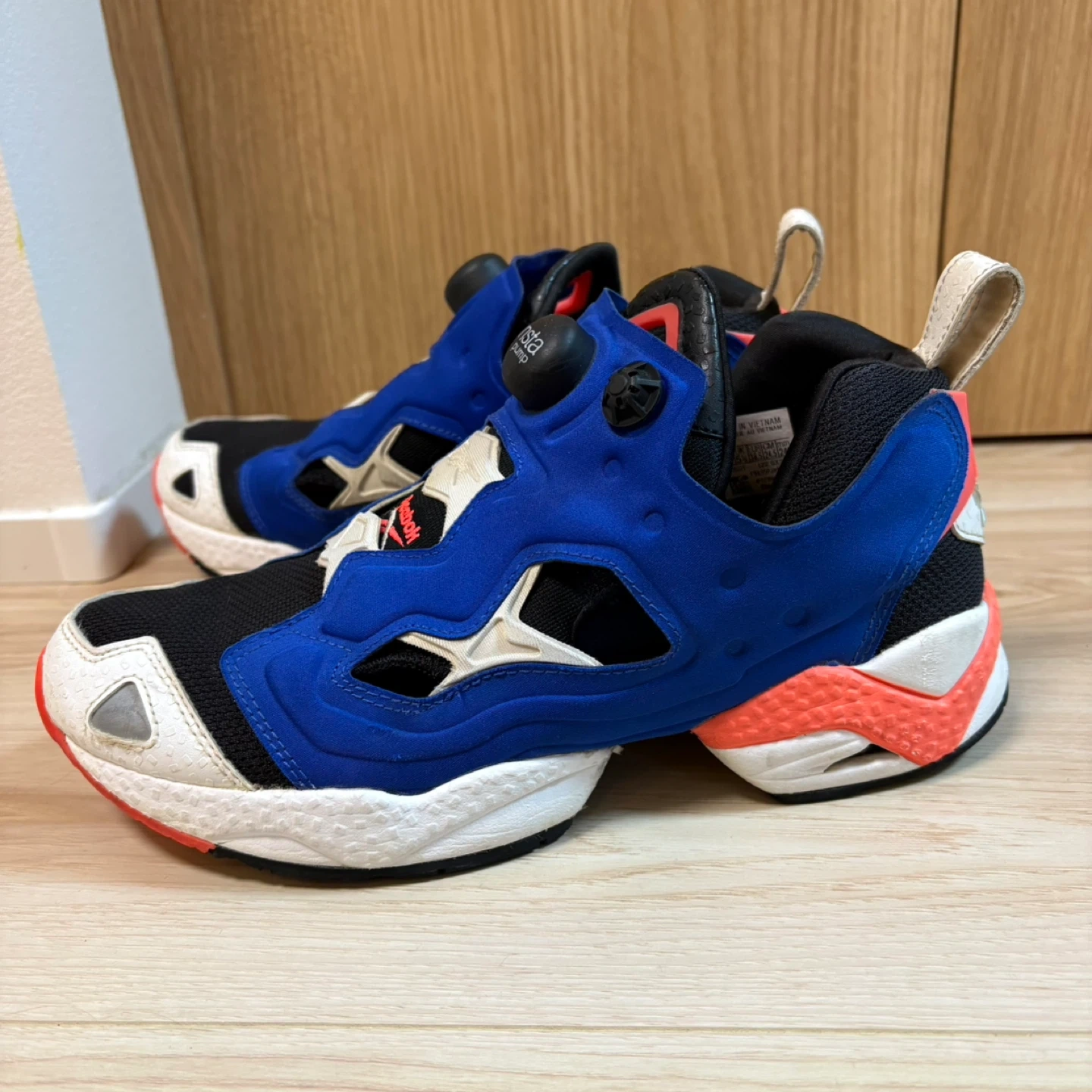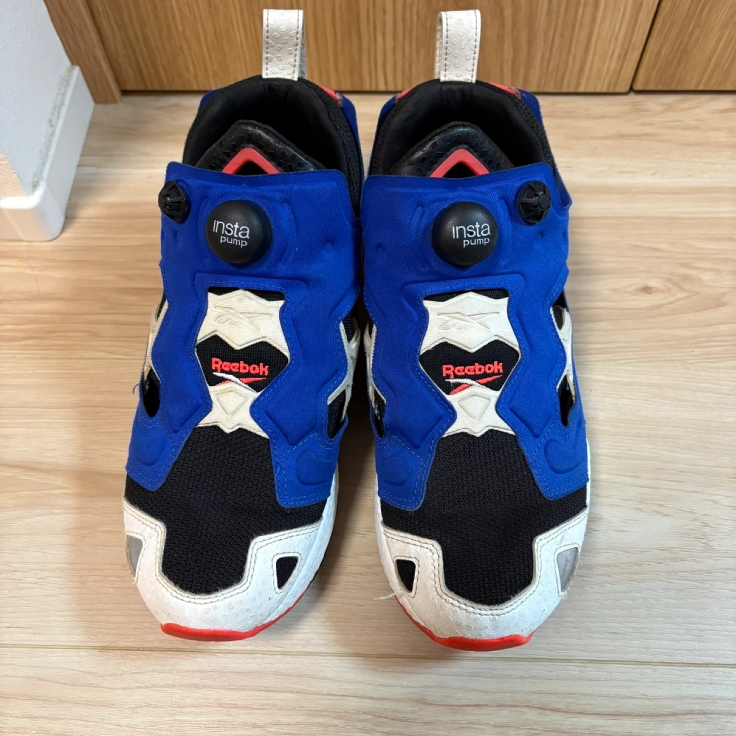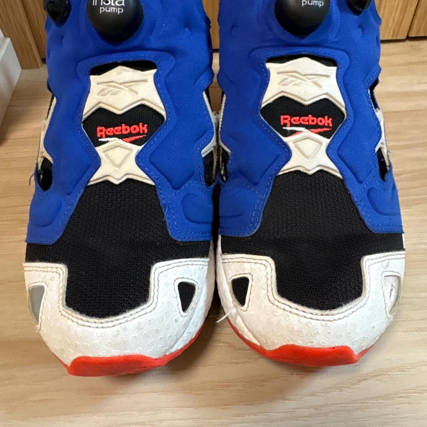 リーボックのポンプヒューリー、リコロール柄になります。 ワンシーズン着用しました。 大きなダメージは見当たりませんが、使用に伴う擦れ・汚れなどの使用感はございます。 特に前つま先部分にややスレ・汚れがありますので、写真にてご確認いただければと思います。 白い部分は比較的きれいな状態です。 サイズ感としては、24.5〜25cmくらいの方にちょうど良いかと思います。 スポッと履けてとても快適なスニーカーです。 中古品にご理解いただける方、ご検討よろしくお願いいたします。 リーボックのインスタポンプフューリーのスニーカーです。 ・ブランド:リーボック ・モデル:インスタポンプフューリー ・カラー:ブルー、ブラック、ホワイト、レッド ・サイズ:USA 6.5、UK 6、EUR 38、CM 24.5、MM 245 ・状態:使用感あり 中古品であることをご了承ください。