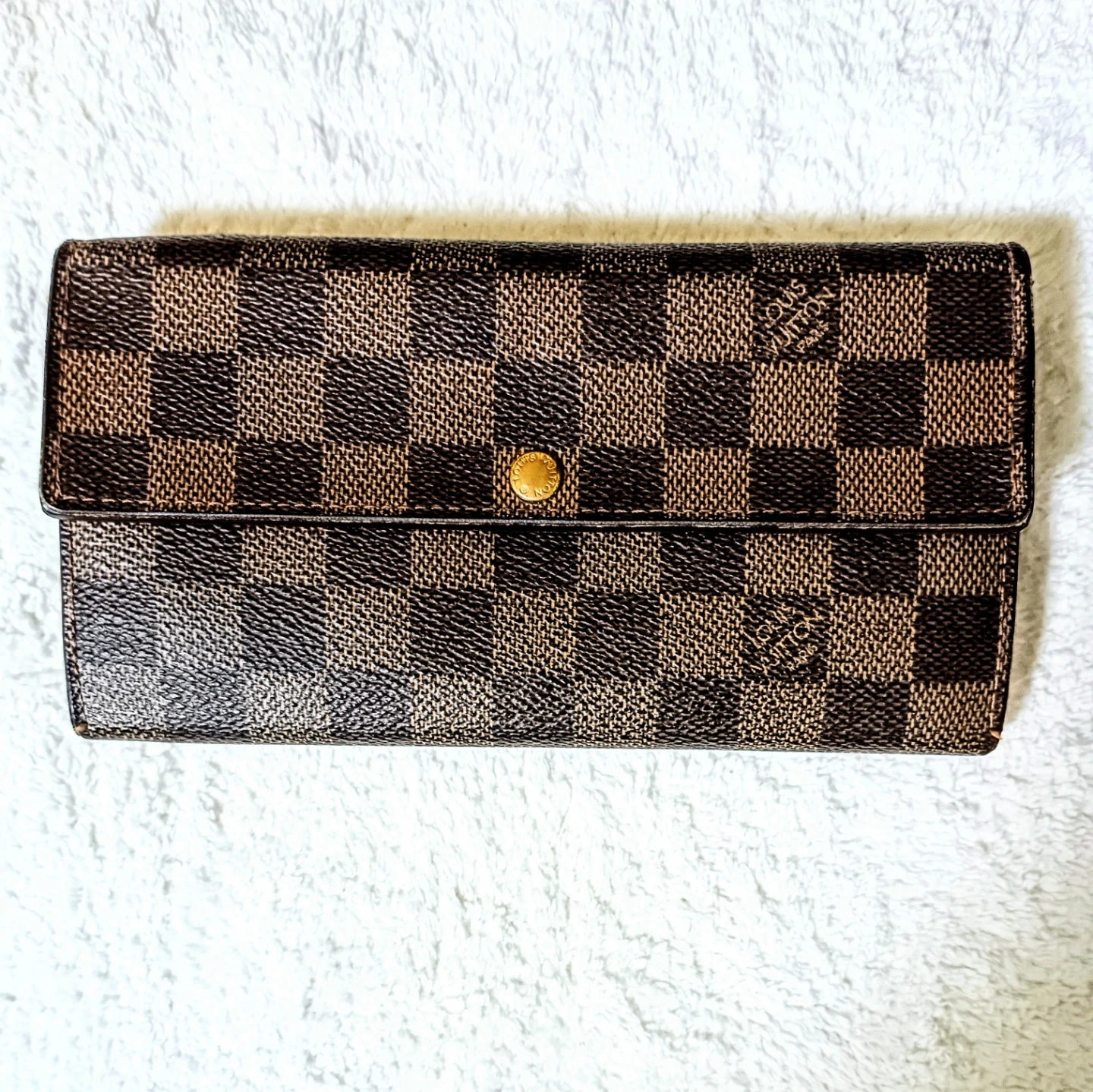 ルイヴィトンの長財布です。購入先はモバオクオークション沖縄出品の商品。日本流通自主管理協会加盟店。シリアル番号はCA0056.と説明されてました。ギャランティカードは有りません。 ・ブランド:ルイヴィトン ・デザイン:ダミエ 紙袋やパンフレット付き郵送ならゆうパック代金引換で送料は1203円だけです。 ご不明点があればお気軽にお尋ねください。