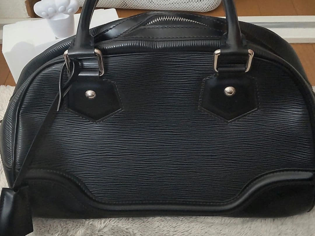 LOUIS VUITTON (ルイ・ヴィトン) ラインエピ 品名 ボーリング・モンテーニュ ノワール 型番 M59322  サイズ 【高さ】20.5cm 【横幅】33cm 【まち】18cm 【ハンド】40cm 仕様 【内側】オープンポケット×1 携帯ポケット×1 南京錠はありません。2枚目写真ハゲ部分あり。 何回か使用しているため神経質な方はご遠慮下さい。 池袋西武のルイヴィトンで購入。 値下げ不可 ご希望の方はお気軽にご連絡ください。