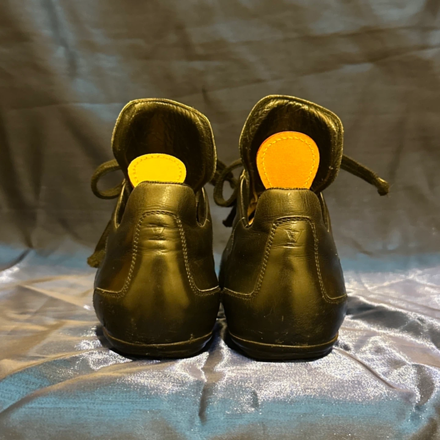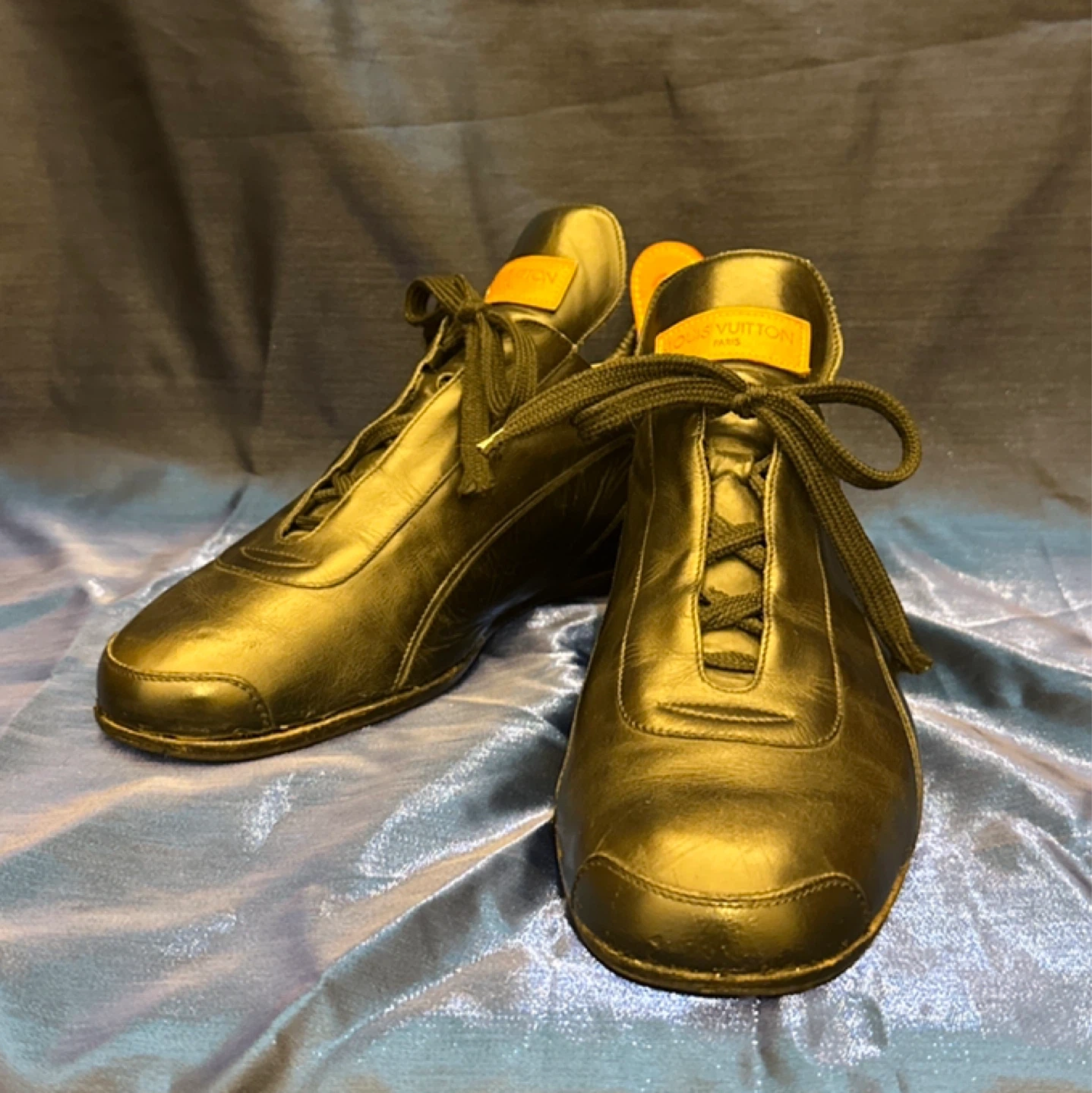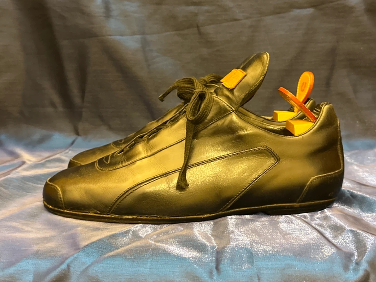 黒の本革スニーカーです。アウトソール は張替え済みです。画像通り細かい傷や汚れあります。usedなので神経質な方や完品を求めている方はご遠慮ください。シューキーパーは付きません。 表記サイズ 7.1/2 アウトソール 全長28.5、全幅9.5 ※他サイトにも出品しているので売切れの場合はご了承ください。