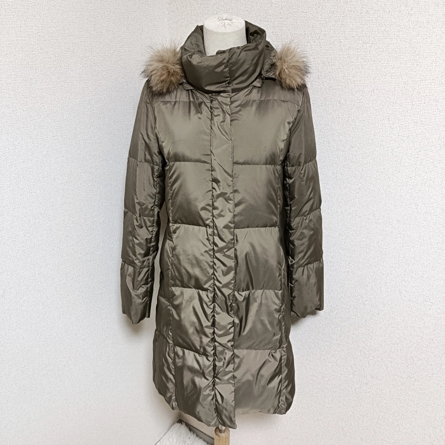 【美品】アバクロ ファー付 ダウンジャケット S カーキ ベルト付