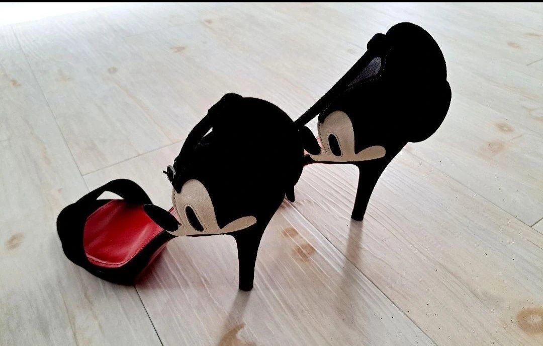 DIANAとディズニーがコラボしたサンダル! とてもレアな商品です! 天然皮革を使用し通気性、吸湿性が高くフィット感履き心地に優れています! ミッキーの顔と耳がとても可愛いですよ! サイズ23.5センチ! ヒール約7.5センチ! お箱もディズニー仕様で隠れミッキーがいますよ! ホテル会食の時に一度履きました! 状態は写真でご確認下さいませ! 足を骨折して以来、ヒールを履かなくなったので出品致します!