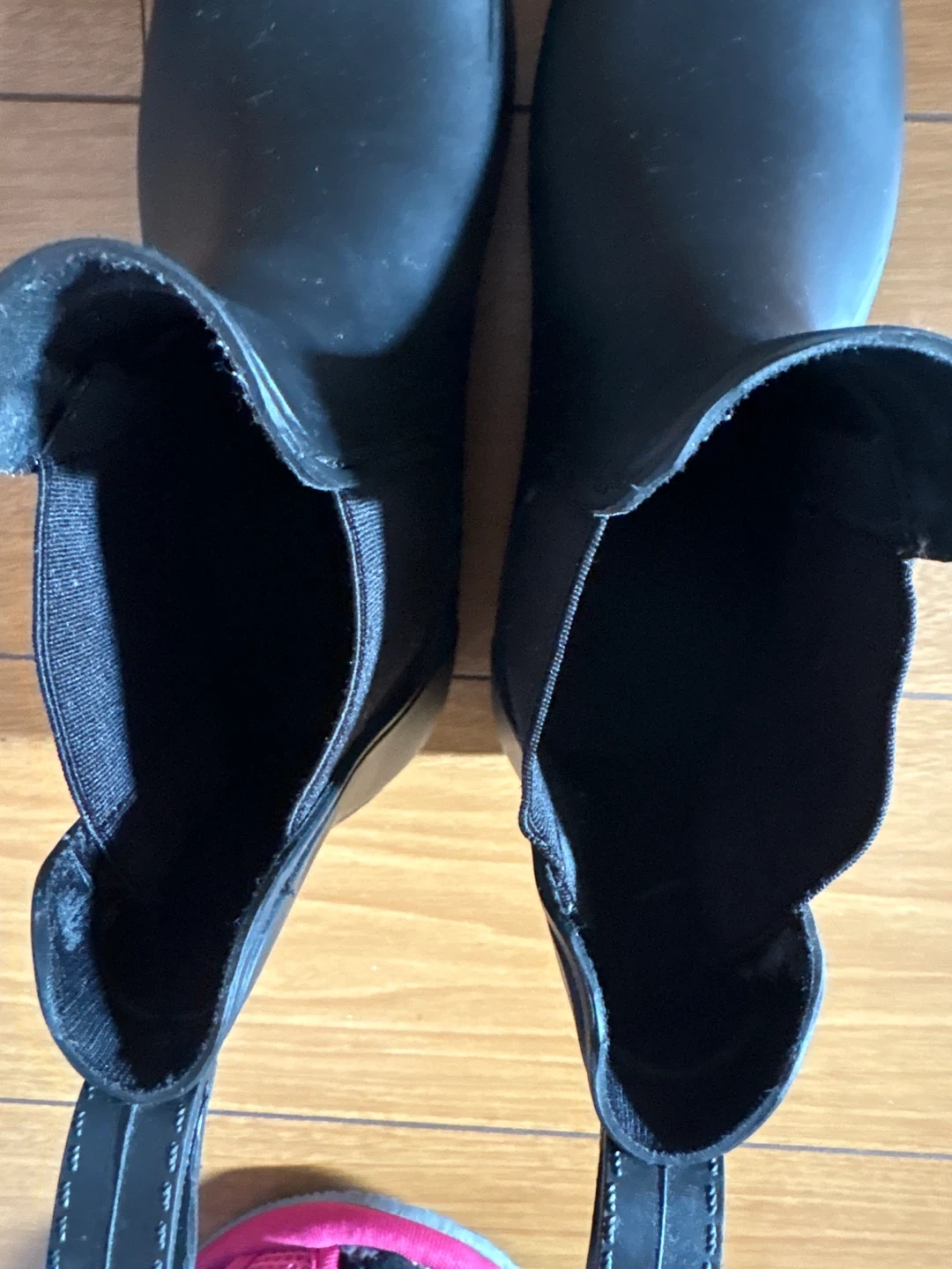 あたたかさレインブーツ 数回履いてます 中敷なし 踵のヘリあり ・カラー:ブラック サイズL(23.5~24.0位かと) 他のサイトにも出品していますので、 急な削除あります