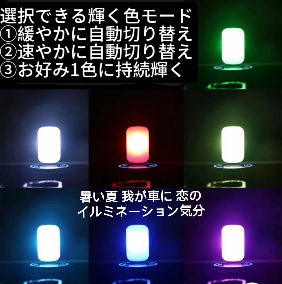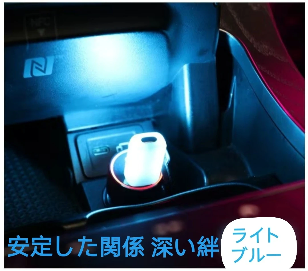 ●USBポート搭載の小型間接照明です。 ●光の色を7色+グラデーションモード(7色が順番に自動で切り替わる)から自由に選択することができます。 ●色と明るさをボタンひとつで簡単に調節可能です。 ●エンジンを切る前の色と明るさを記憶するメモリー機能を搭載しています。   ●スマートフォン等の充電にも使えるUSBポート付きです。(データ通信対応) ●車両側/市販のUSBポートに挿し込むだけで簡単に使用できます。 【サイズ】4※1.8※0.8CM 【発光色】レッド、ブルー、パープル、ライトブルー、イエロー、グリーン、ホワイト7色。 3モード(ボタン一つで設定) ①緩やかモード 7色がゆっくりと順番に自動で切り替わる ②素早くモード 7色が速やかに順番に自動で切り替わる ③指定モード 1種類の色に指定 【素材】ABS ABS樹脂とは、アクリロニトリル(Acrylonitrile)、ブタジエン(Butadiene)、スチレン(Styrene)という3種類の有機化合物を使ってつくられる熱可塑性樹脂です。それぞれの頭文字をとって「ABS樹脂」と呼ばれています。 長所: 表面光沢性および着色性が良く、外観に優れます。 加工性、寸法安定性に優れます。 押出・射出成形、ブロー成形、真空成形、カレンダー成形など他種多様な成形加工が可能です。 近年では、3Dプリンタ製品でもABS樹脂が使用されています。 耐薬品性に優れます。 塗装やめっきが可能です。 切削、溶着などの後加工も可能です。