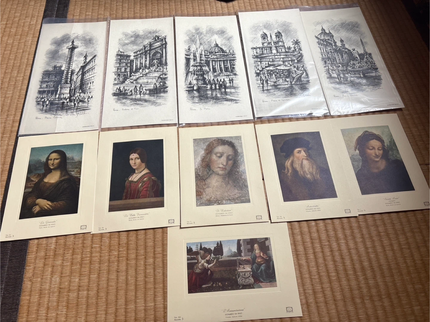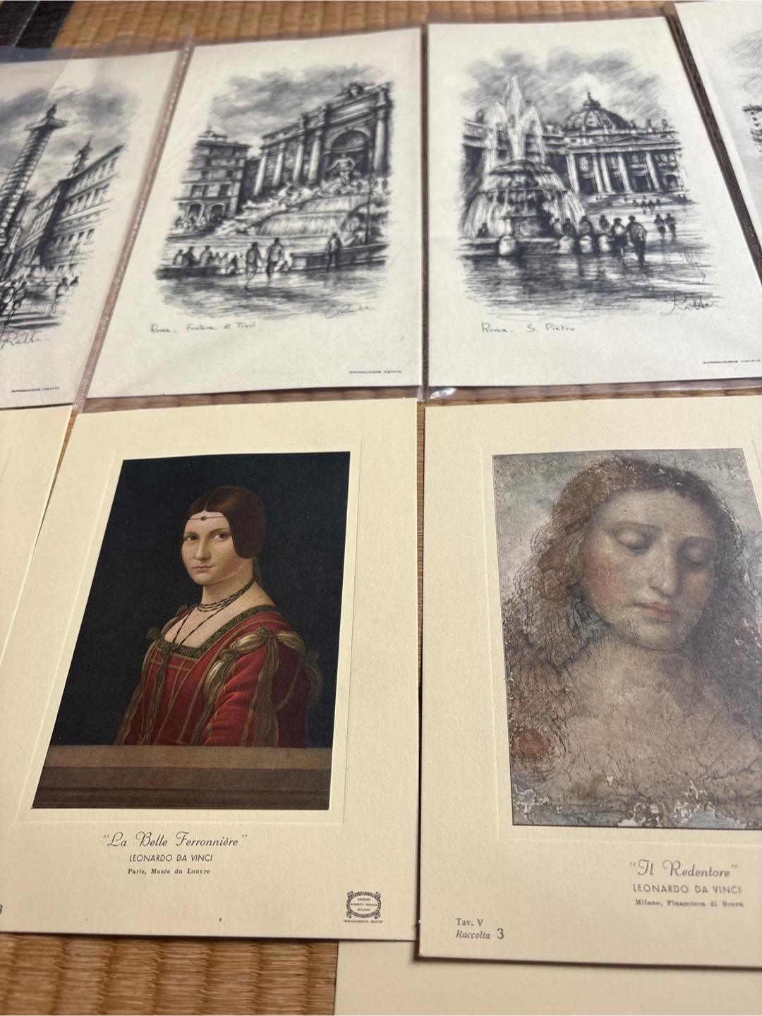 レオナルド・ダ・ヴィンチの絵画プリントセットです。 ・絵画のプリント ・様々な絵画が楽しめます。 ・裏面に「VINCI - ANGELO SARCANI MILANO」の印字あり 中古品であることをご了承ください。