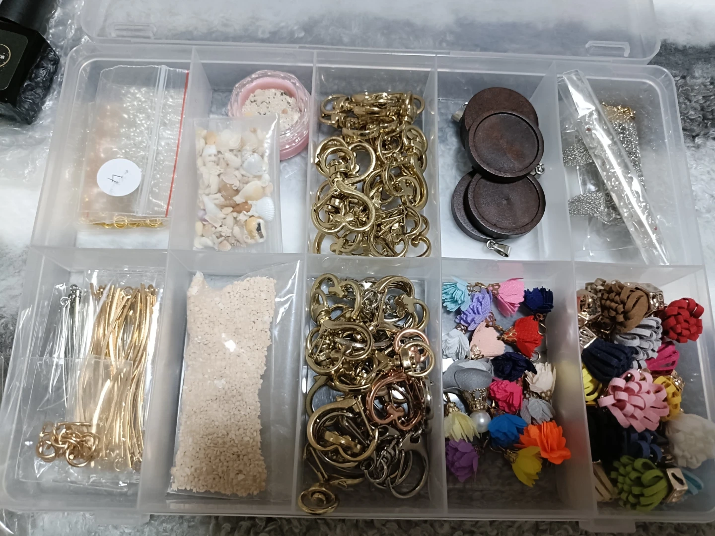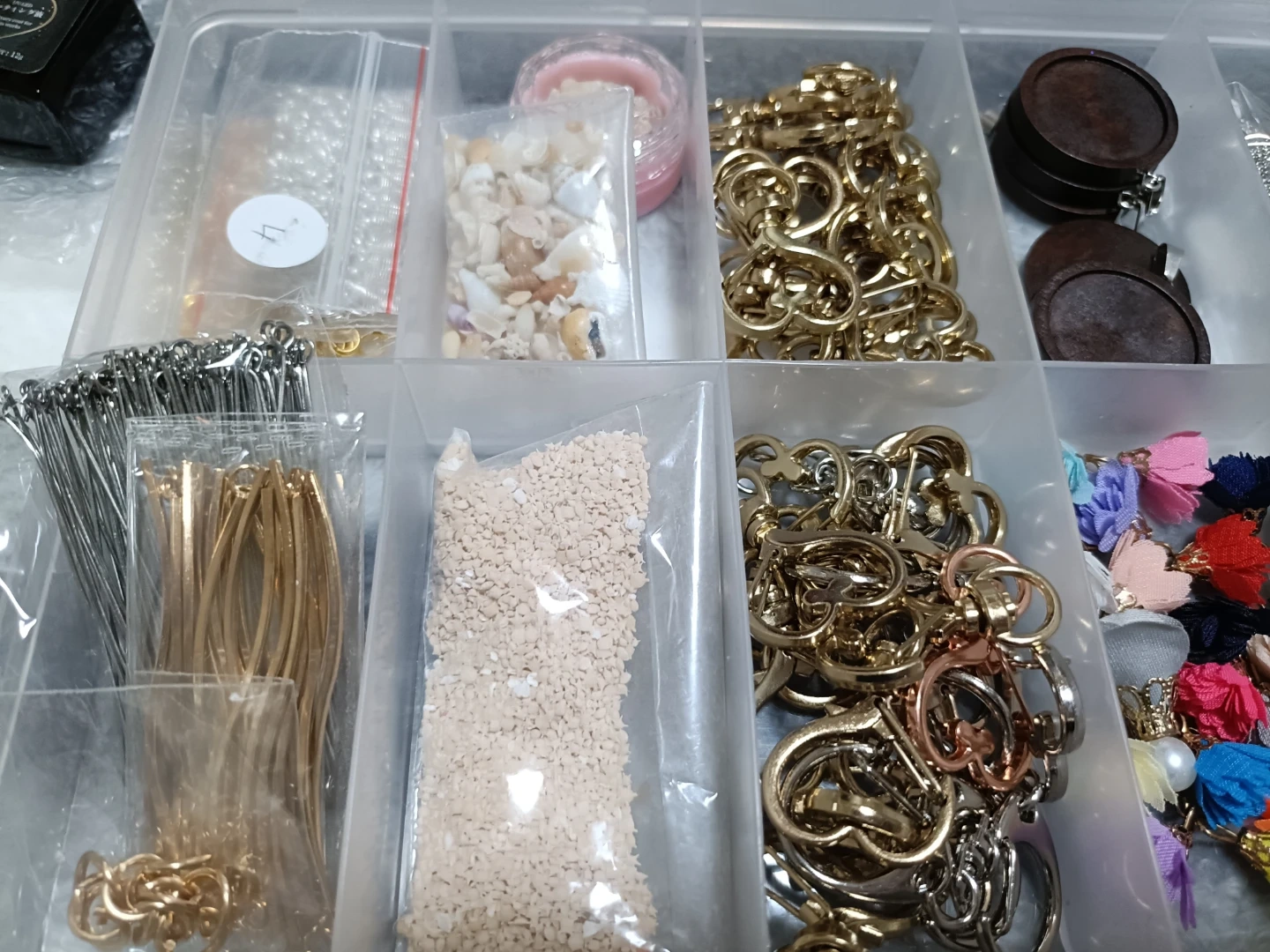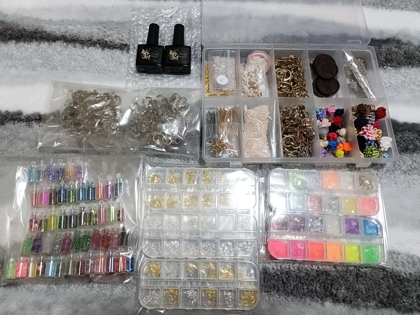 ⋆┈┈┈┈┈┈┈┈┈┈┈┈┈┈┈⋆ ~ ハンドメイド パーツ各種 まとめ売り ~ ✔ 星の砂、砂 ✔ ネックレスチェーン ✔ ブレスレット パーツ(龍) ✔ コーティング剤 (2本) ※ 1本 / 使用有り/ ※ もう 1本/ 未使用… 未使用に近いくらい、残量有り。 ✔ キーホルダーパーツ その他、写真に映るもの。 各 個数は、解りません。 ご理解いただける方で 宜しくお願い致します ⋆┈┈┈┈┈┈┈┈┈┈┈┈┈┈┈⋆