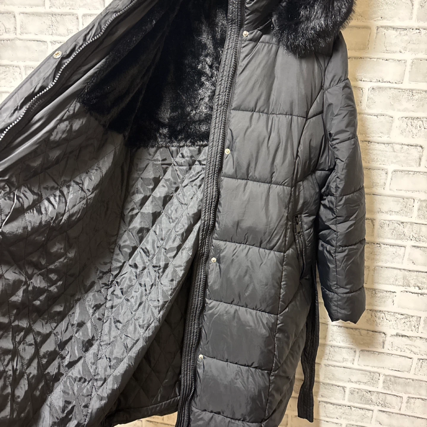 ★商品説明 レディース ロングダウンジャケット 黒 大きめサイズ ライナー付き ★サイズ XXLサイズ 身幅56cm 袖丈56cm 着丈102cm ★状態 多少の使用感はございますが大きく 目立つ汚れはなく問題なく着用可能です。