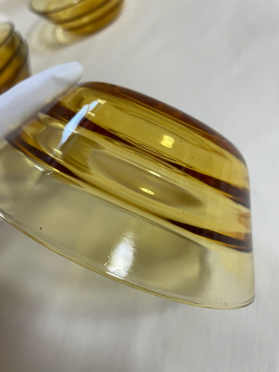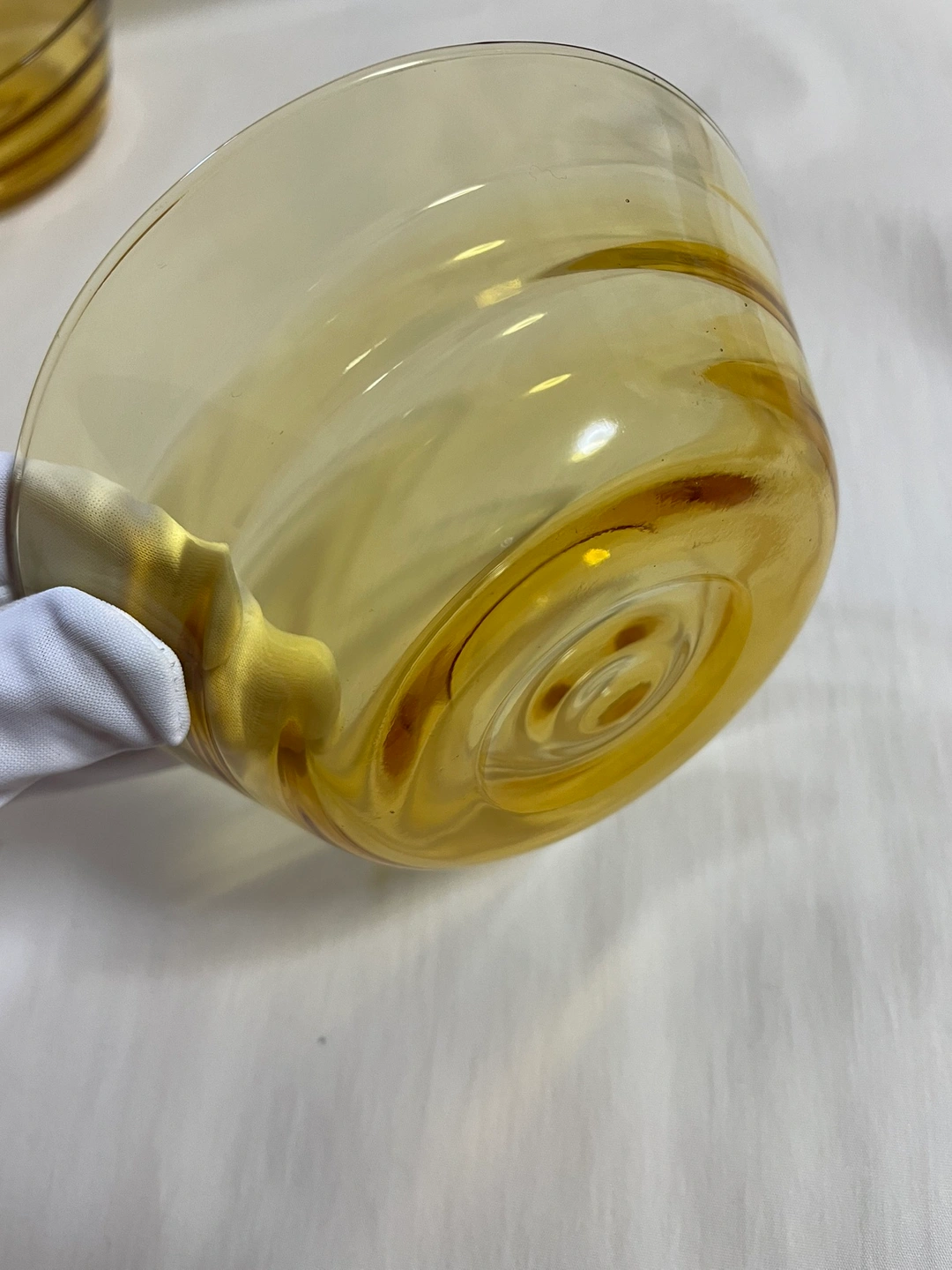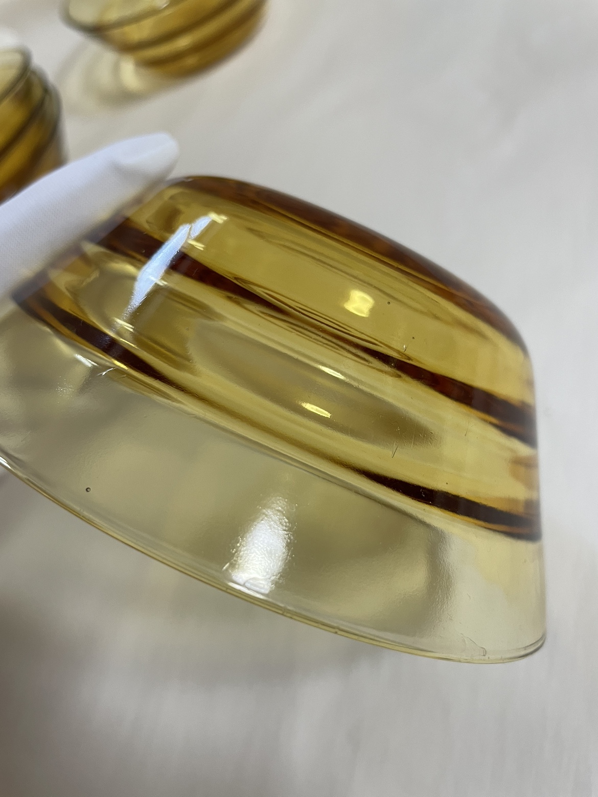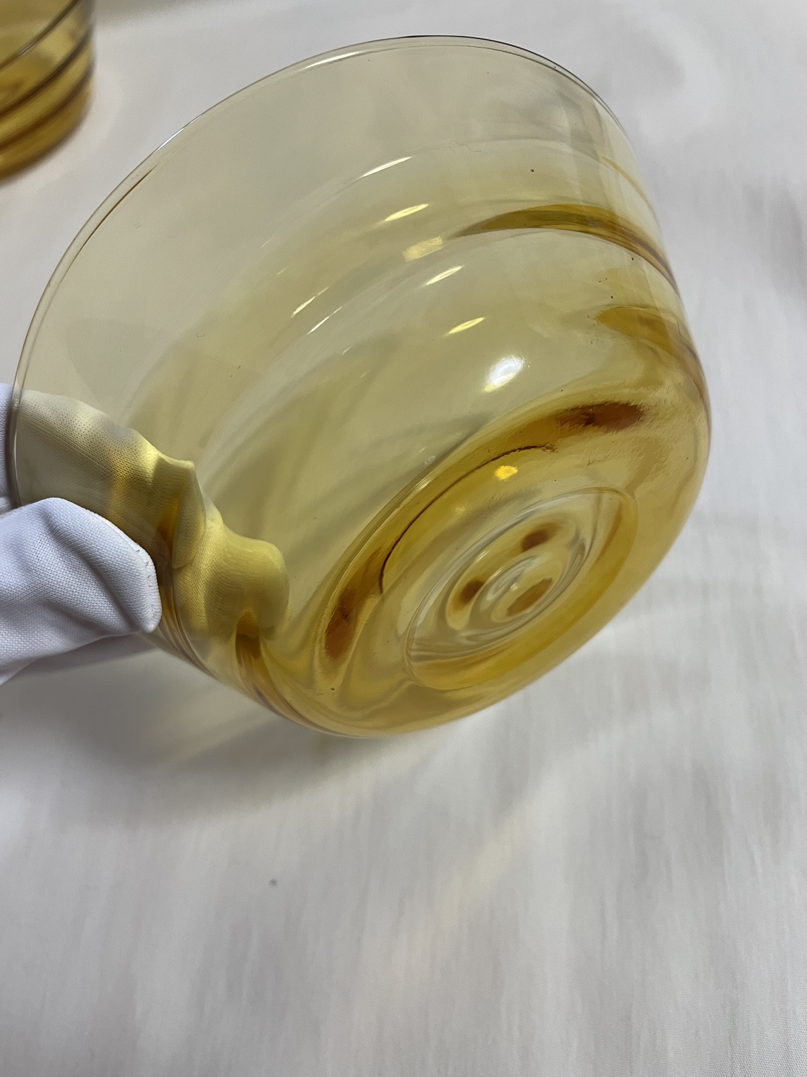 古いもの、証明するものがありませんが昭和から平成にかけて のものになるかと思います。 明るい茶のクリアガラス 上部の直径で、12センチほど 側面にナミがありますが、これは内側で手に触れます。 大きなキズはありませんがところどころに小さな" 気泡" があります、1〜2ミリ。 使用歴は分かりませんでした。 5個セットでどうぞ。 深さがあるので汁物やデザートにいかがでしょうか? ご足労ですが目黒線の武蔵小山か西小山駅あたりまで来てくださる方、状態をご了承いただき活用してくだされば嬉しいです。