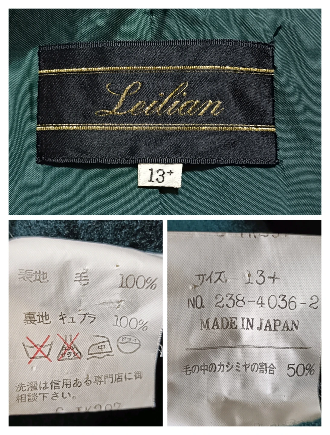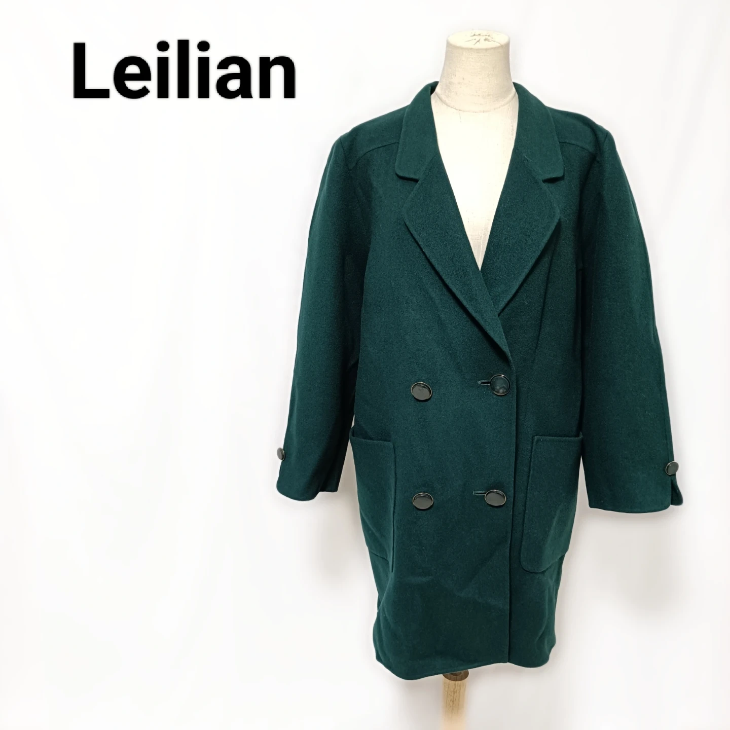ご覧いただきありがとうございます! ​レリアンの上質でエレガントなダブルブレストコートです。 贅沢に**カシミヤを50%**ブレンドしたウール素材を使用しており、軽やかで暖かく、非常に滑らかな肌触りです。 深みのある美しい深緑(ダークグリーン)。ブラックやネイビーとは一味違う、洗練された大人の着こなしを演出します。 □商品名□ レリアン Leilian カシミヤ50%混 ウール ダブルコート 13+ 深緑 □ブランド□ Leilian レリアン □表記サイズ□ 13+ □実寸サイズ(cm) □ 着丈:85 肩幅:45 身幅:58 袖丈:58 ※実寸につきまして多少の誤差はご了承ください。 ※表記サイズだけではなく実寸のサイズをご確認ください。 □カラー□ 深緑 (ダークグリーン) □素材□ 表地:毛 (ウール) 100%   (うちカシミヤ 50%) 裏地:キュプラ 100% □コンディション□ 目立った汚れやダメージなど特にございません。 ※汚れはできる限り写真にて掲載しております。まずは画像をご確認ください。 どうぞよろしくお願い致します。 □商品管理番号□ T2-W-5567