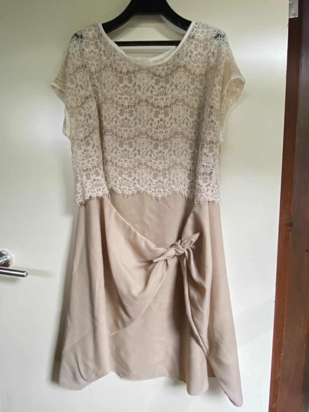 レースのワンピースです。 ・色:ベージュ ・デザイン:レースとリボンのデザイン ・状態:使用感少なめ レースのベストは、切り離しができますので、2wayでお楽しみいただけます。 手洗い可能。 クリーニング済み。圧縮袋に入れて保管していたので、ややしわになっていますが、アイロンをかければ問題ないかと思います。 結婚式や二次会などでも使えるワンピースです。 ご不明点があればお気軽にご連絡ください。