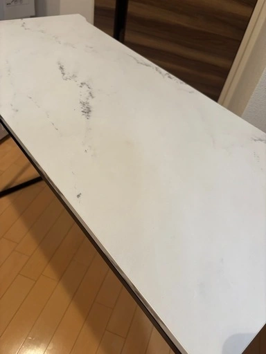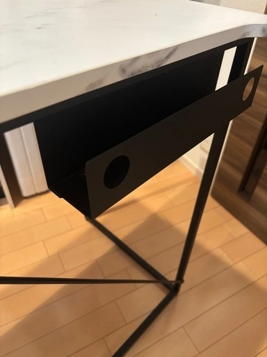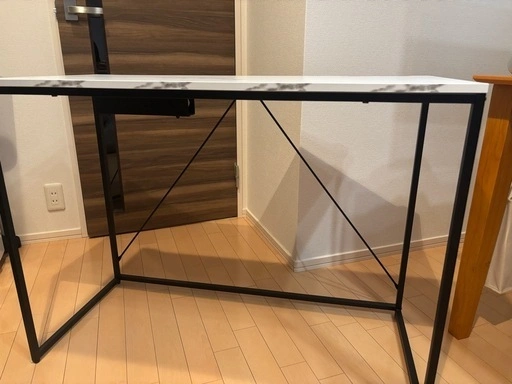 サイズ:横98cm x 縦45cm x 高さ69cm 大理石風天板、 左右どちらにも付け替え可能なタップ収納付き、 コードスリット付き。 ご覧いただきありがとうございます🌷 世田谷区の世田谷代田周辺まで取りに来てくださる方限定でお譲りしております。 詳しい住所は取引決定後にお伝えします。