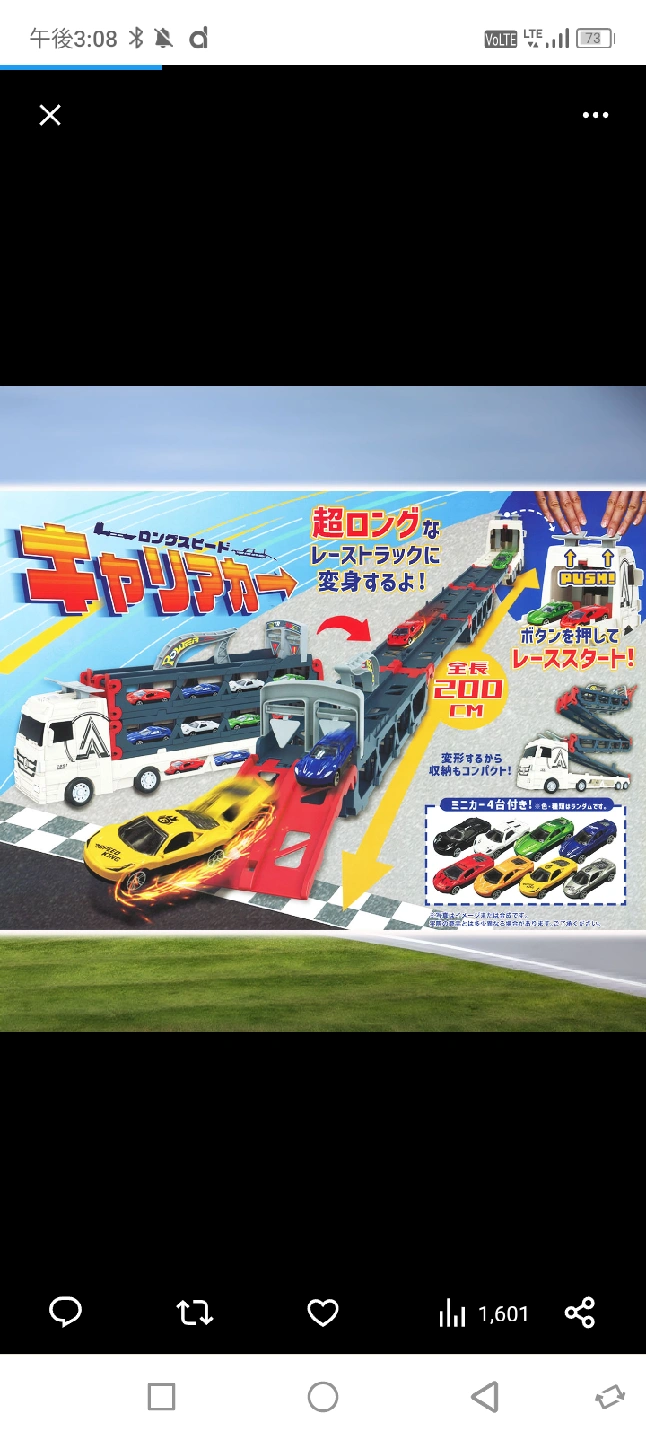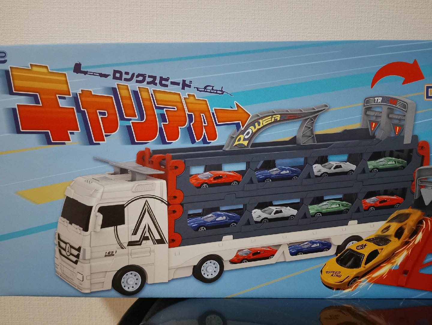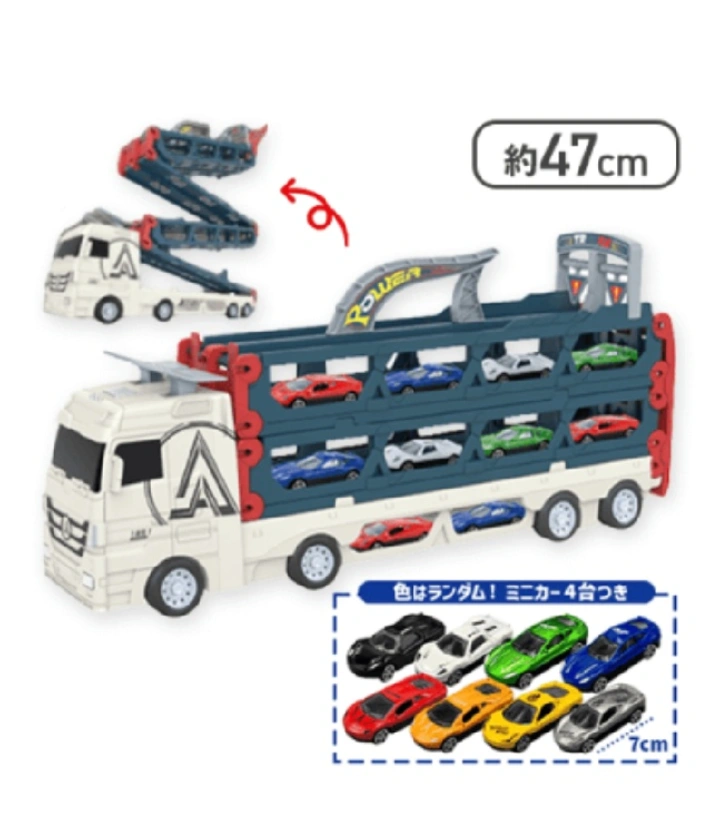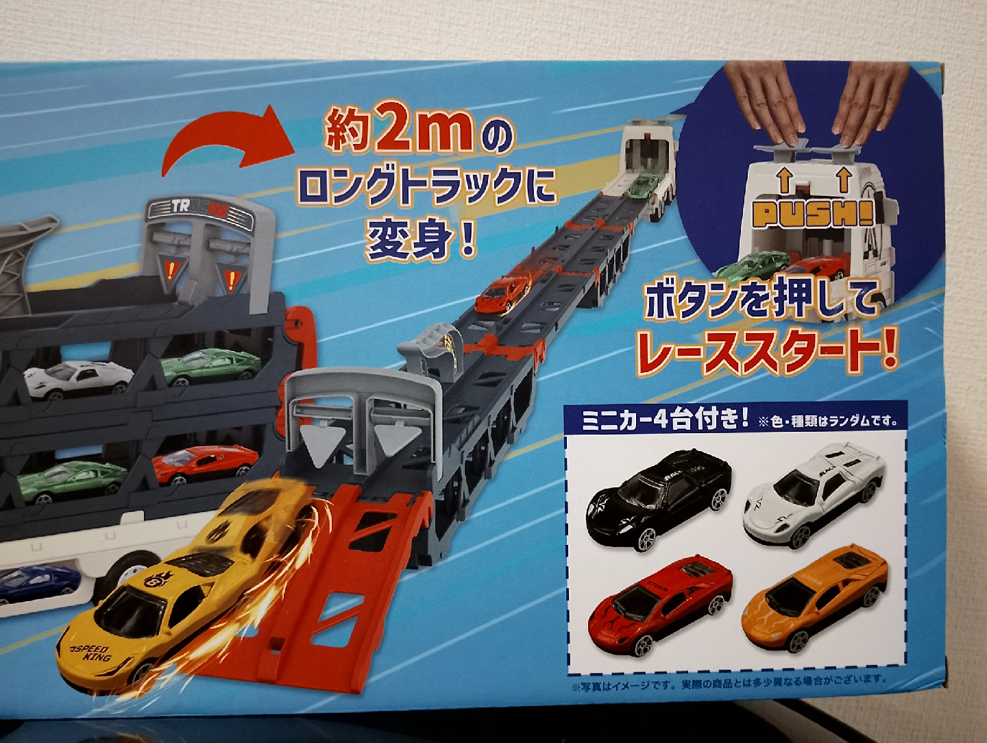 ロングスピードキャリアカー 約2mのロングトラックに変身! ミニカー4台付き 色・種類はランダム ボタンを押してレーススタート! 新品未使用