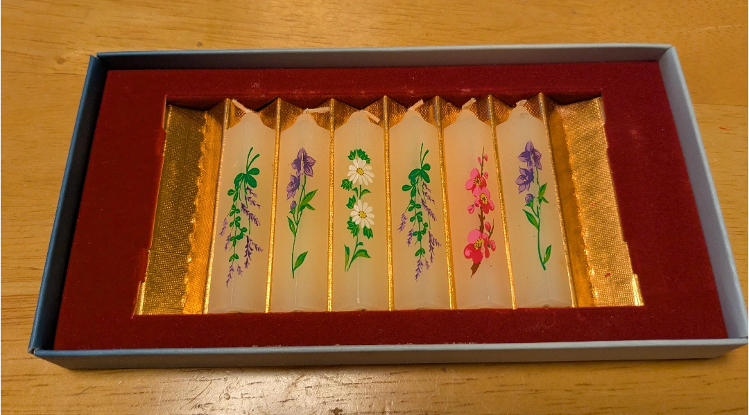 あたたかさ・数量不足あり (承知の上でご購入をお願い致します。) ・8本に対して6本(2本不足) ・燃焼時間 約40分 ・側面にきれいな花が描かれています。 ・ビニール袋でのお渡し