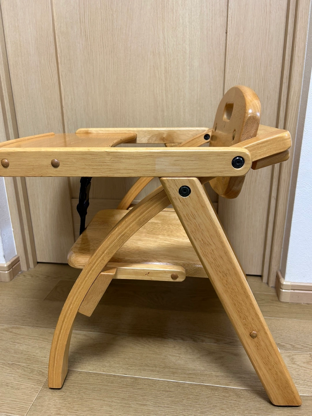 品名】yamatoya 大和屋 Arch Low Chair アーチ ローチェア ベビーチェア 木製 折りたたみ式 【サイズ】幅400mm 奥行500mm 高さ470mm 座板高さ 215mm 【材質】天然木(ラバーウッド材) 【カラー】ナチュラル 【対象年齢】6ヶ月頃-3歳半頃 【耐荷重】30kg頃 yamatoya大和屋 ローチェア テーブル&ガード付 木製でとても頑丈な造りになっておりますので末永くご使用して頂けます 2年ほど前に購入して使用しました、 引っ越しに伴い上の子達は不要になり 下の子もハイチェアにするので必要な方にお譲りします 使用に伴う傷汚れが有ります お渡し前に全てアルコール消毒しますが気になる方はご遠慮下さい 細かな傷はありますが食事をする分には問題ありません。 上の子は細いので5歳近いですがテーブルを下げても入って使えました。 赤ちゃんが居るので大型荷物を発送しに行けません 自宅近くまで取りに来ていただける方でお願い致します。 引っ越しに伴い多忙な為 12/16.17.18でお渡し出来ればと思います。 他サイトでも掲載しておりますので コメント頂けるとトラブル防止になります。