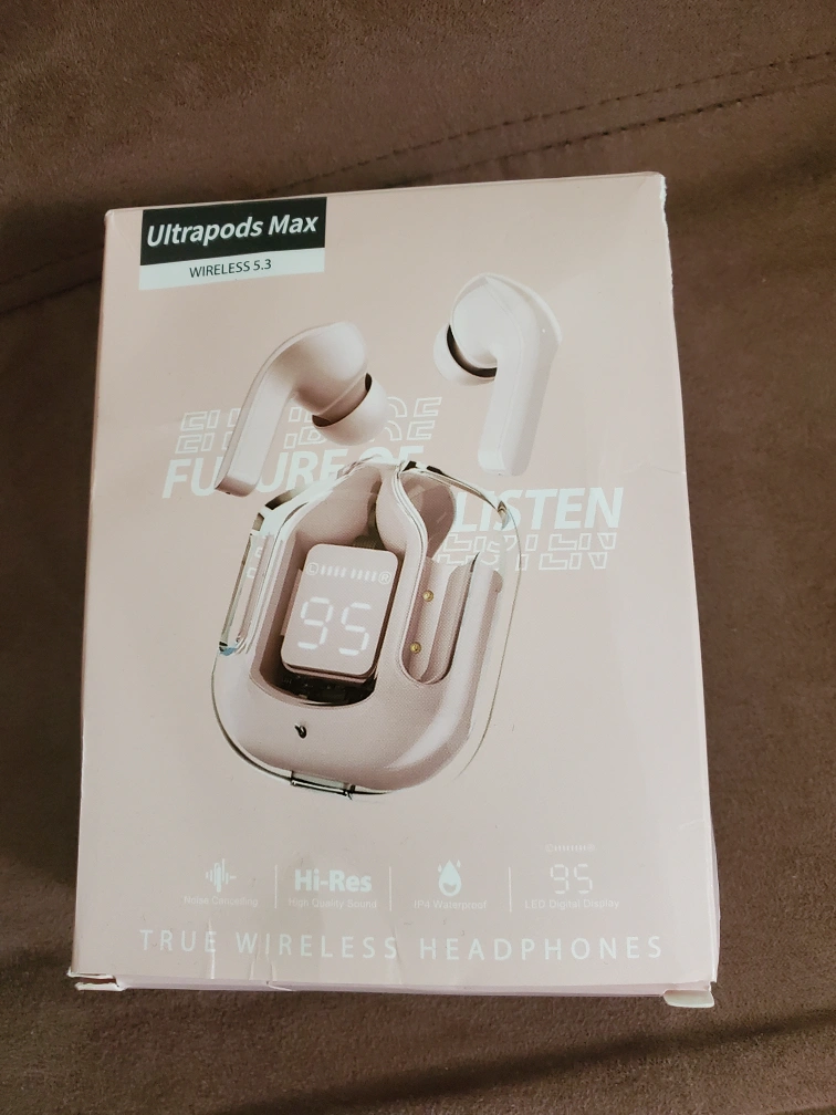 箱はつぶれています。 子供に購入しましたがいらないと言われてしまい出品しました。 アマゾンやヤフーショッピングでは1500円くらいです。 こちらは動作確認のため箱から出しました。 在庫は2つあります。 2つセットで1000円にします。 宜しくお願い致します。 ・カラー:ピンク ・TRUE WIRELESS HEADPHONES ・Ultrapods Max ・WIRELESS 5.3 ・USBケーブル、説明書付き ・箱あり