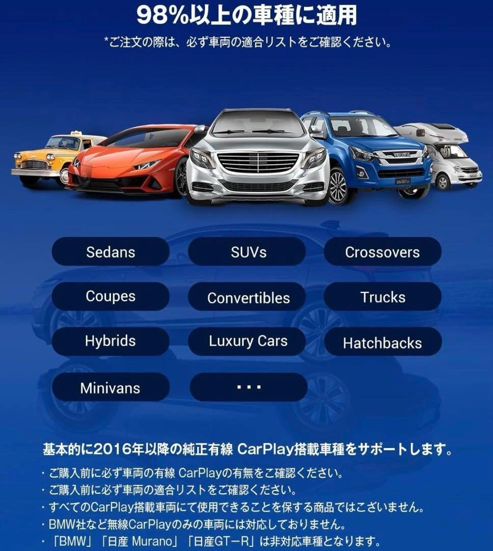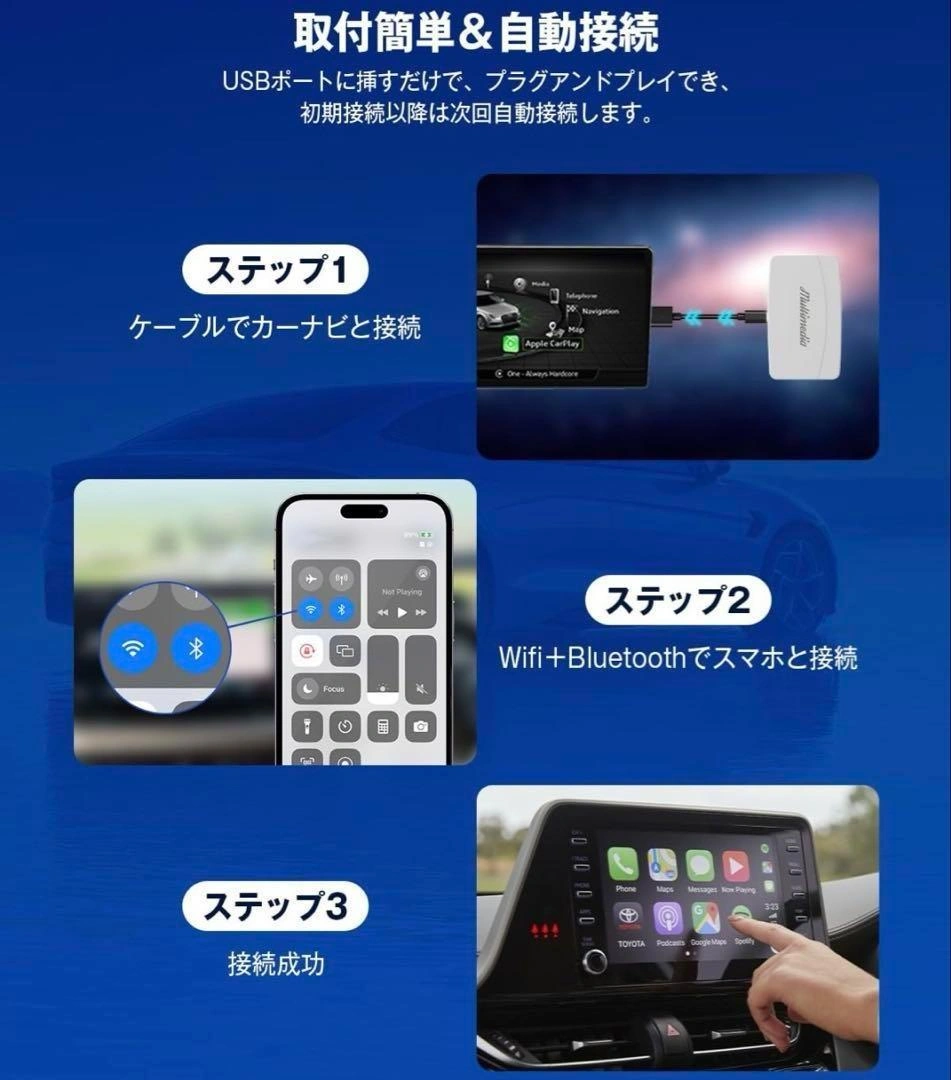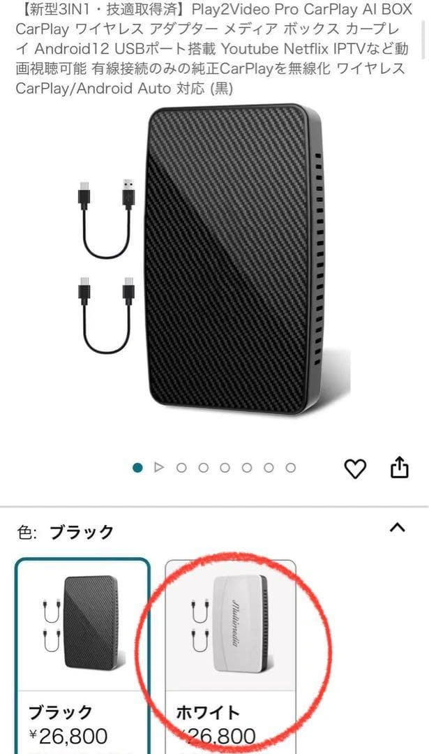 新品未使用です。 撮影のために開封しました。 お渡しするのは未開封です。 参考価格:¥26,800 ブランド:Nerrcilo 接続技術:Bluetooth、Wi-Fi、USB 色:ホワイト ⭕️3in1自由切り替え Android12システム、ワイヤレスCarPlay、ワイヤレスAndroid Autoが自由に切り替えられるメディアボックスです。 すべての有線の機能をワイヤレス(無線)にアップグレードする最適なソリューションです。 ⭕️Android12システム搭載&動画視聴可能 Netflix、YouTube、YouTube Music、Spotify、IPTVがあらかじめインストールされていて、動画視聴のほかに、様々なアプリを車内で楽しむことができます。 iPhoneとAndroidスマホ両方対応です。 ※アプリのダウンロード機能には対応していません。 ⭕️USBポート搭載&高速・安定 外付けハードディスクやUSBメモリなどを接続して、それぞれに保存したファイルを再生できます。 128GB以下のUSBメモリをサポートし、Bluetooth と WiFi を最大限に活用して、運転中における電話、メッセージ、音楽、地図、ポッドキャスト再生などのスマホの機能をアクセスできます。 高速で安定した中断のないCarplay体験を楽しめます。 ⭕️取付簡単&自動接続 車のCarPlay/Android Auto対応のUSBポートに接続するだけで、ワイヤレスカープレイに変換でき、最速10秒程度で完成します。 一度接続すれば、次回からは自動で接続されます。 コンパクト設計なので、携帯に便利で、いつでもどこでも気軽に使えます。 ⭕️98%以上多車種対応 基本的に2016年以降の有線 Carplay搭載車両に適合、社外ナビとBMWシリーズとは非適合です。 ※「BMW」「スバル(SUBARU)」「日産 Murano」「日産GT-R」「日産GT-R」「プジョー(Peugeot) 3008」は非対応車種となります。 その他、気になる点はお気軽にコメントください! よろしくお願いします♪